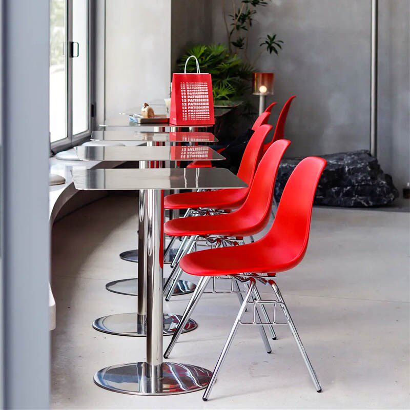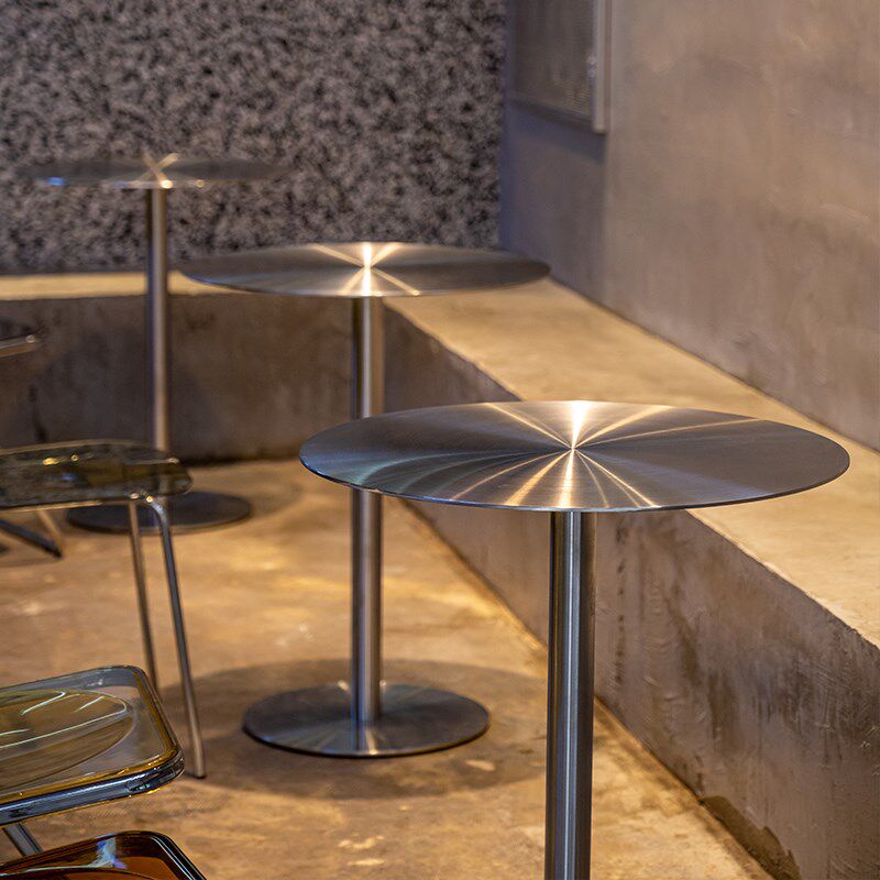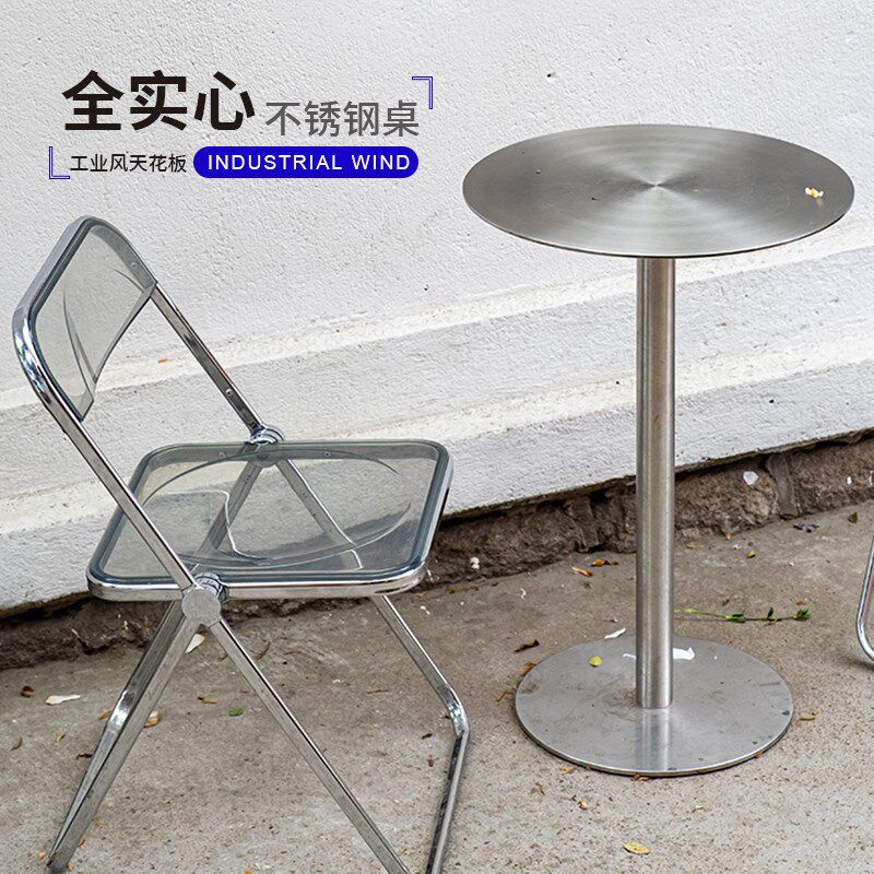 不锈钢小圆桌餐厅餐桌户外简约金属吧桌工业风咖啡店桌子椅子组合