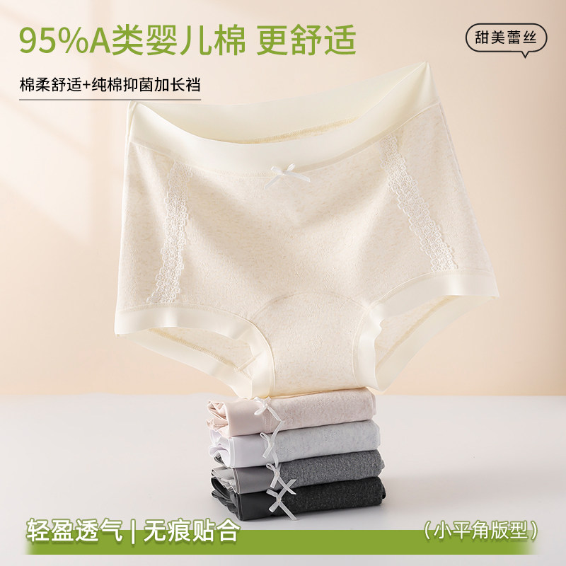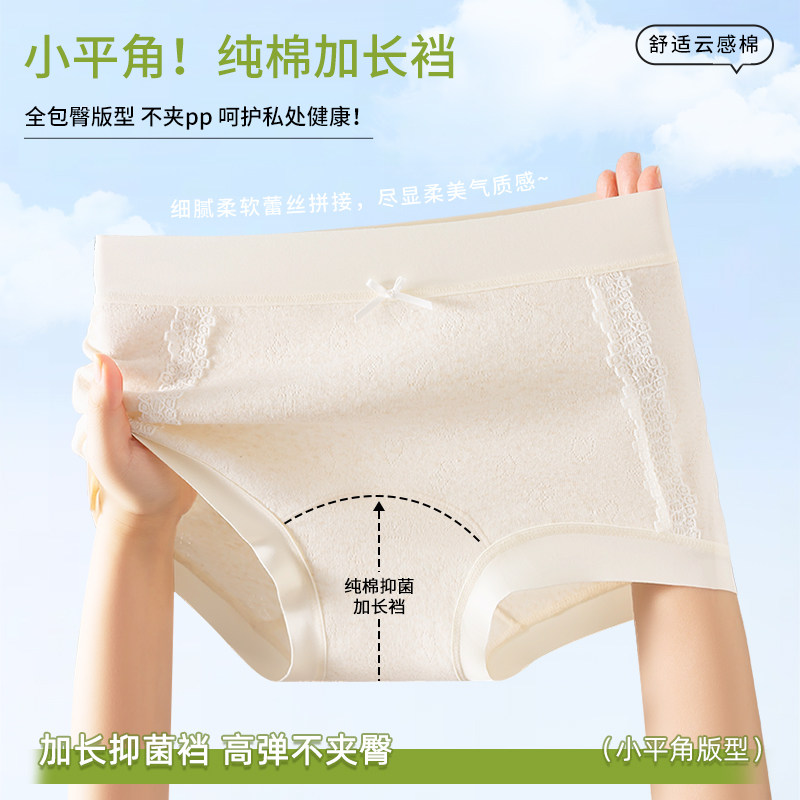 全棉精品【CC】A类棉女士平角内裤全包臀无痕蕾丝中腰四角裤8075