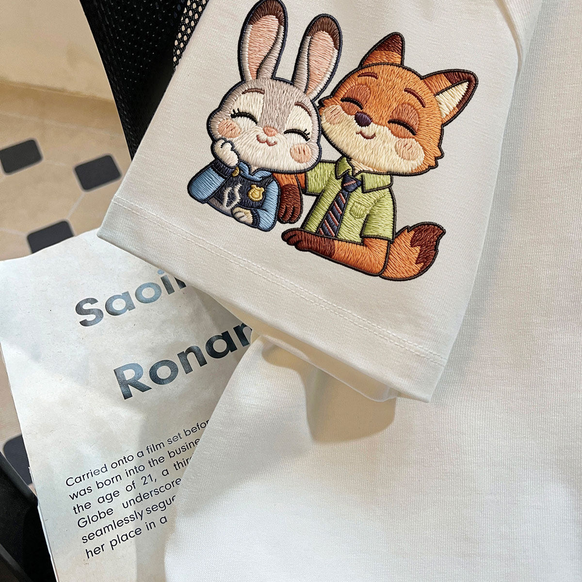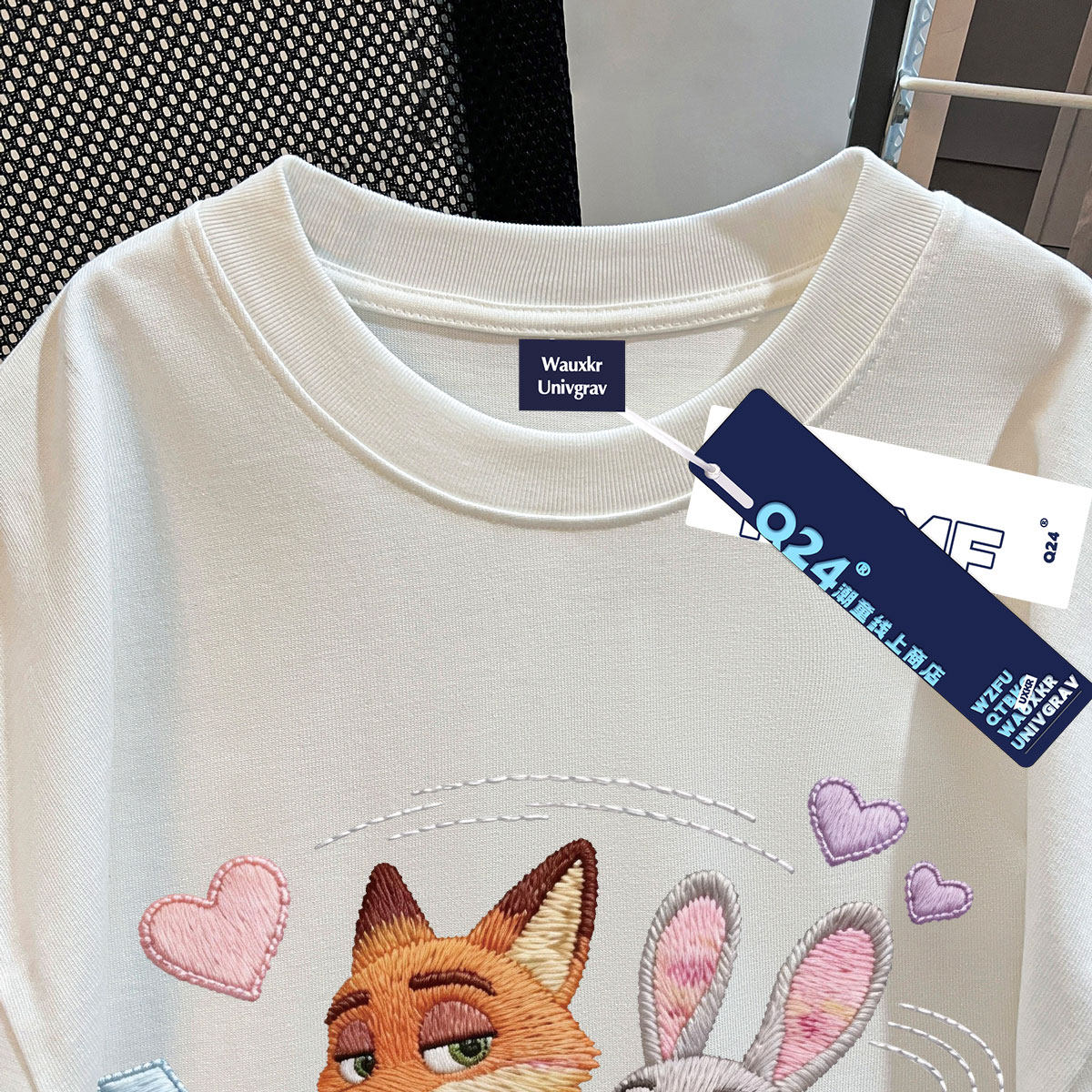 女童疯狂动物城仿刺绣2026夏季款纯棉短袖t恤初中生休闲宽松上衣