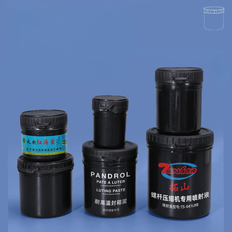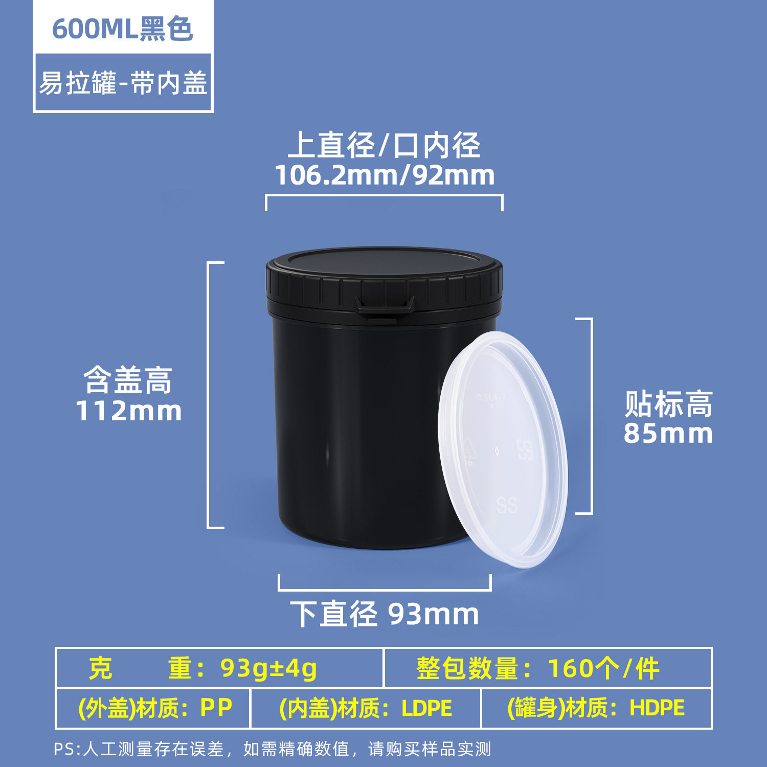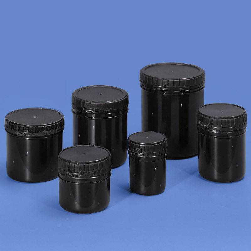 黑色塑料罐500g油墨罐广口瓶试剂瓶 带内盖1L螺旋密封塑料罐圆形