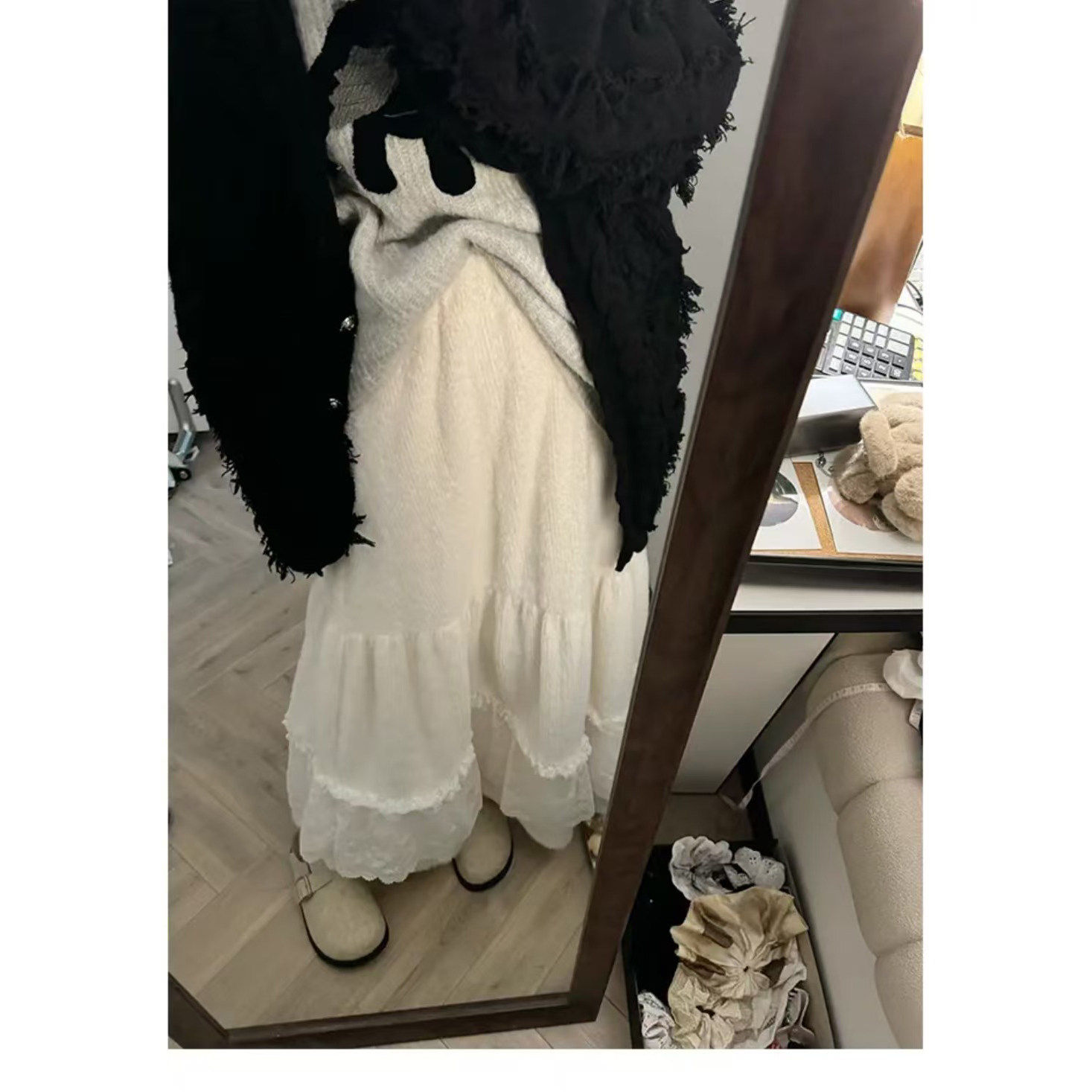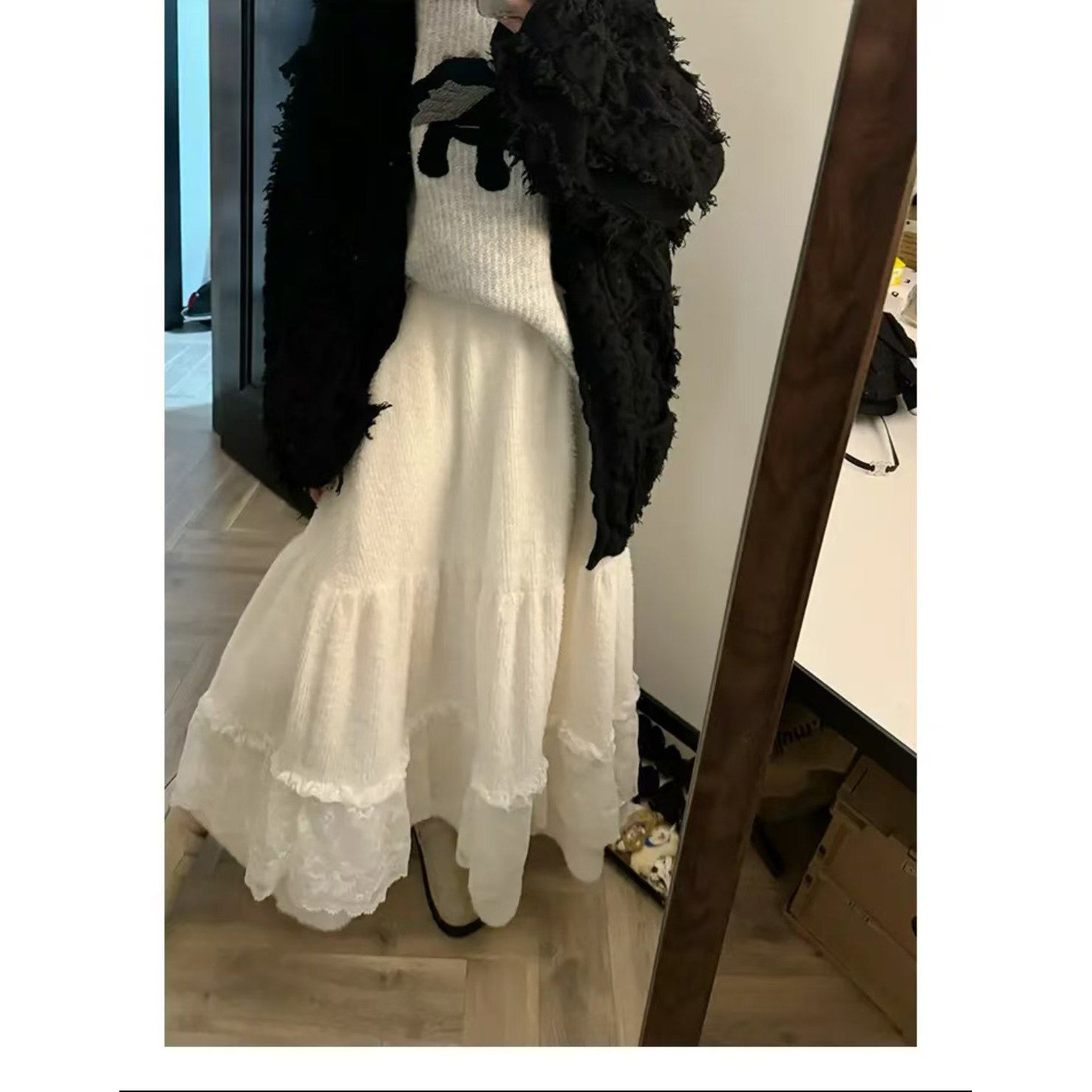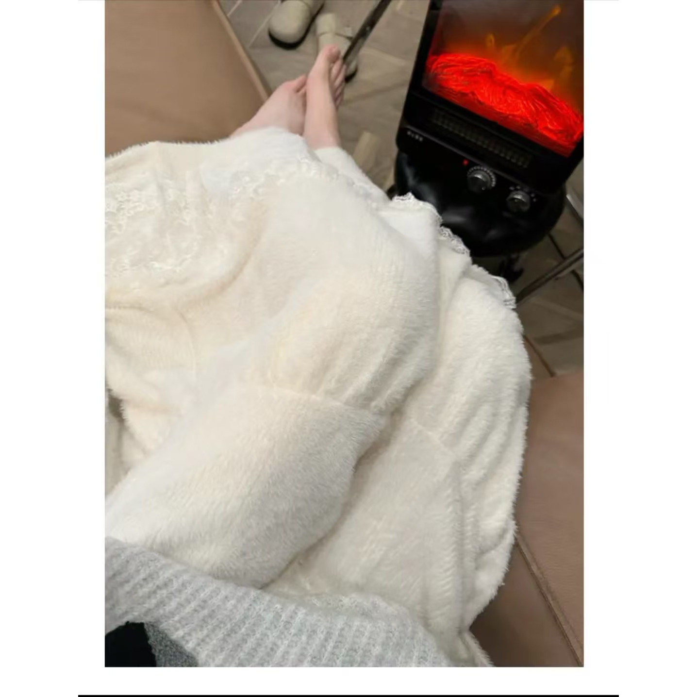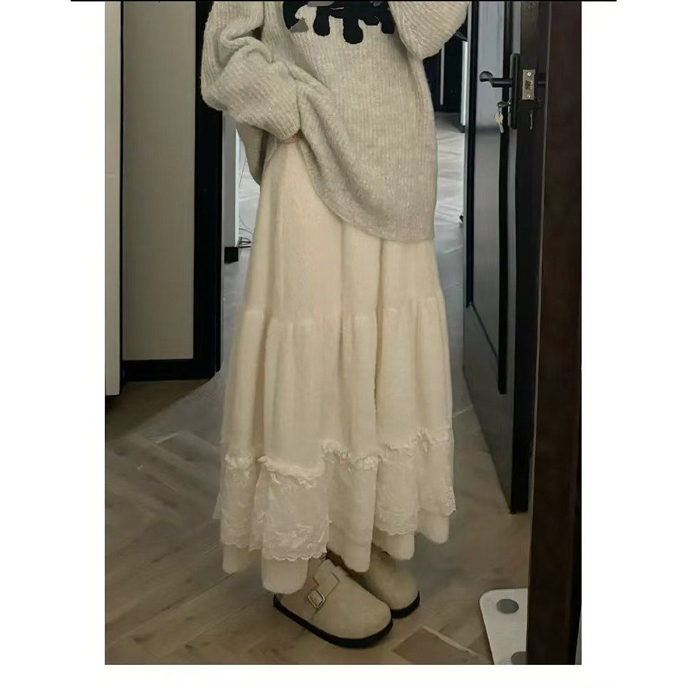 大尺码加厚毛绒绒半身裙女秋季高腰蕾丝蛋糕裙胖MM遮肚子显瘦裙子