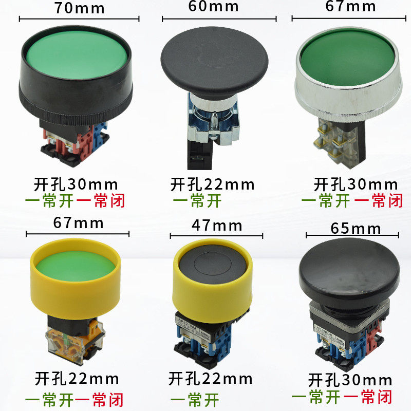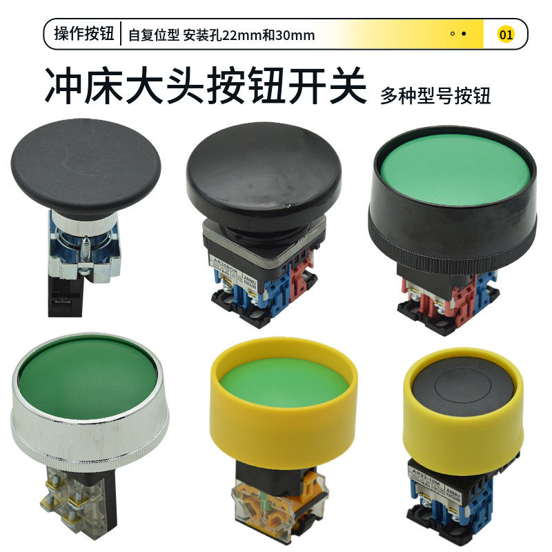 冲床大头平双手启动按钮开关 大蘑菇头外径67mm45mm钻孔22MM30mm