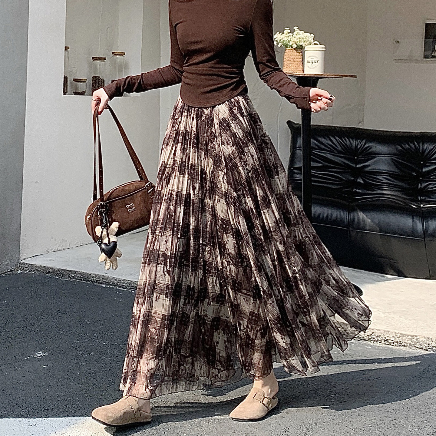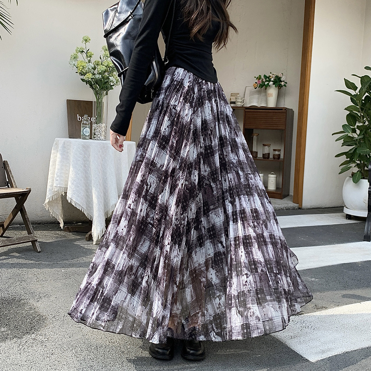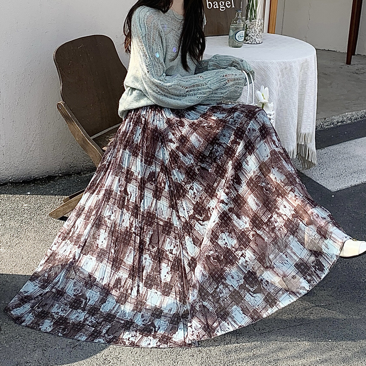 2026春季新款法式不规则复古拼色格纹显瘦高腰A字半身裙