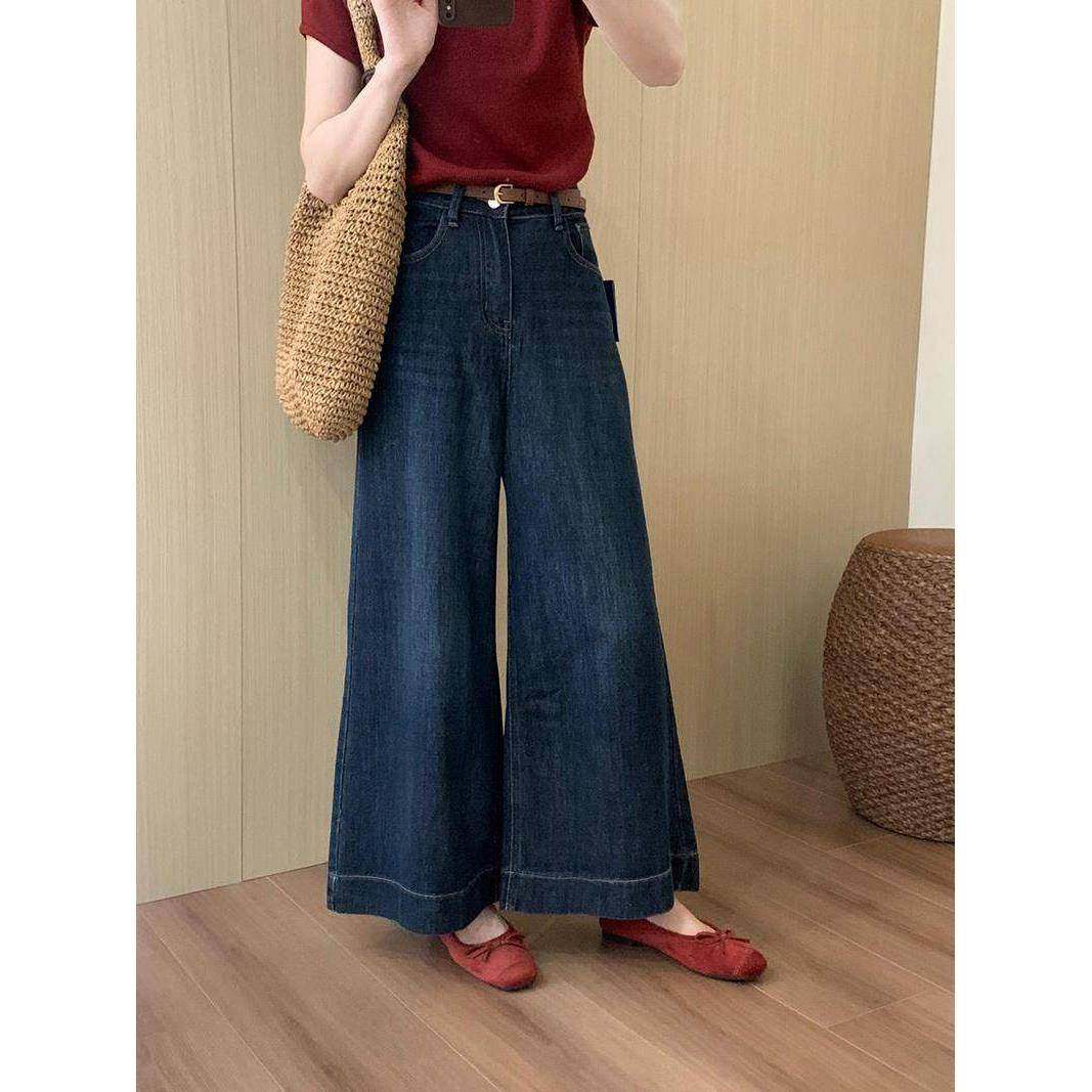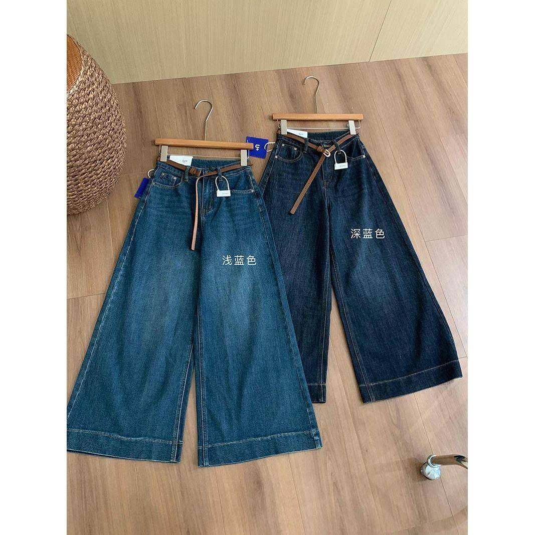 大牌百搭高2腰覆古裤子205春季新款百搭休闲简风裤直筒微喇约IKK