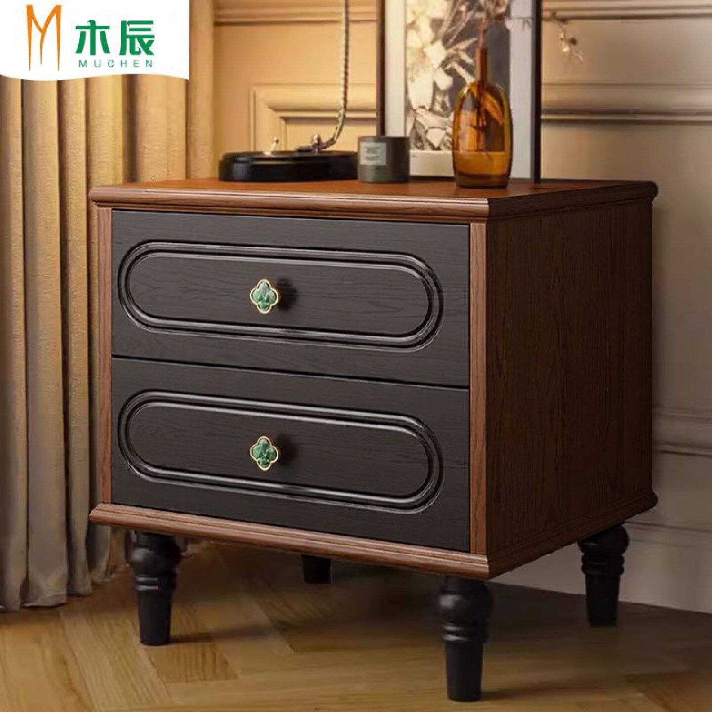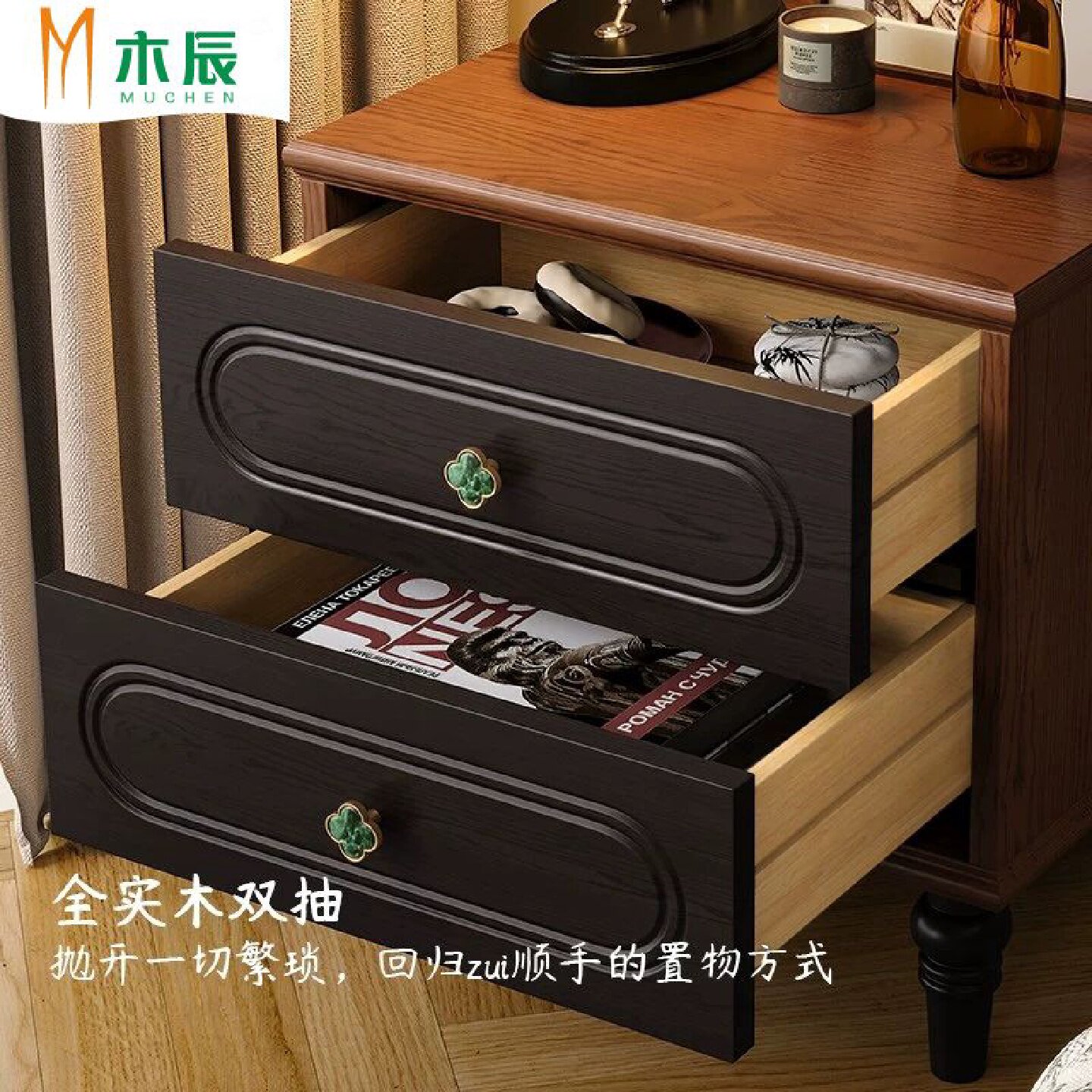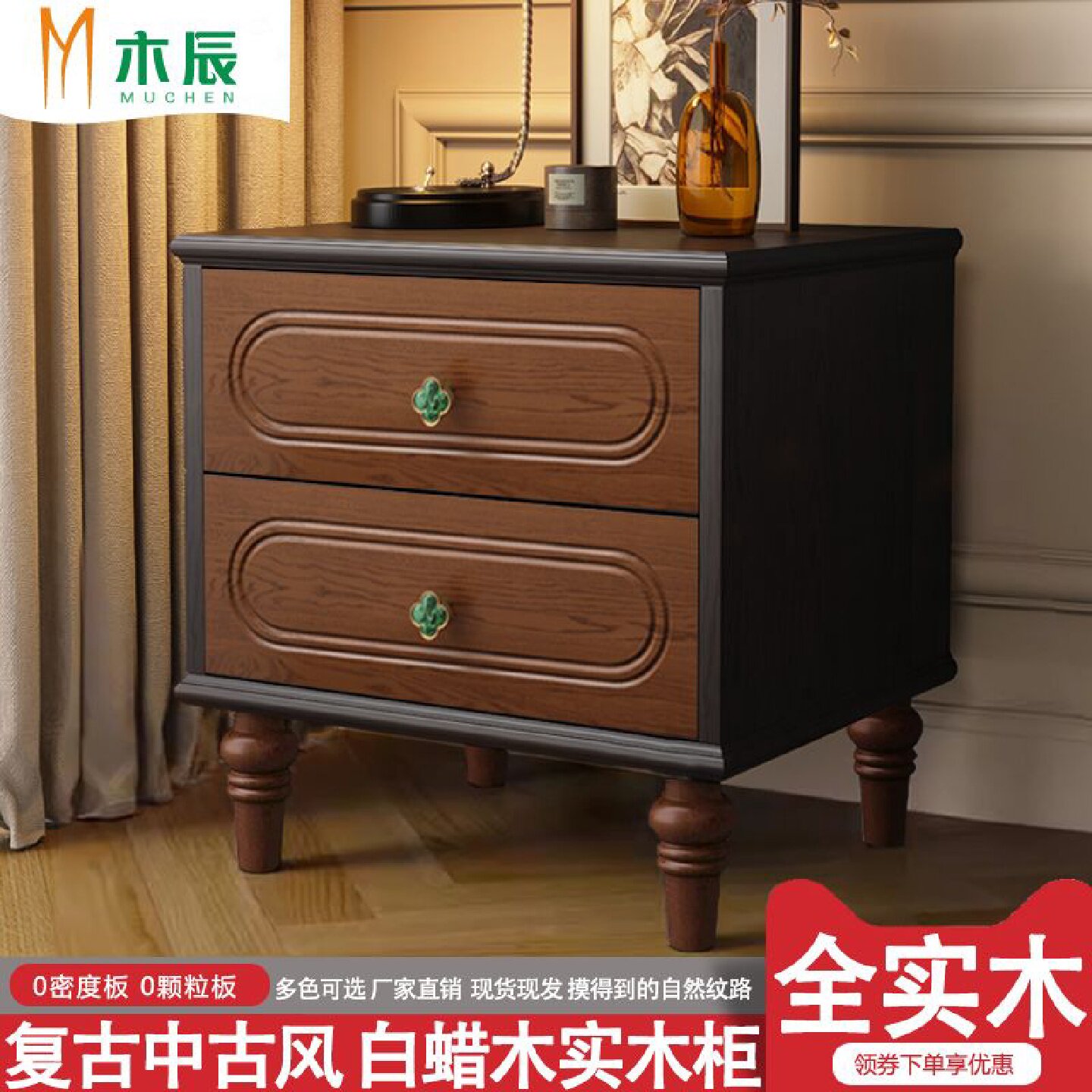 白蜡木床头柜家用卧室2025爆款全实木法式床头柜小众设计感中古风