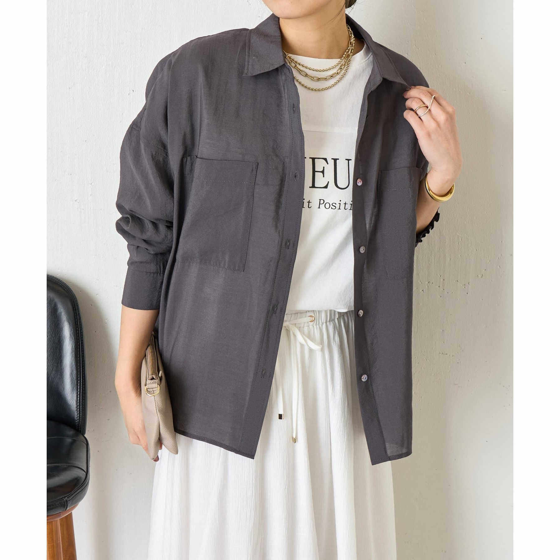 D21065日单9000日元新款客供料单排扣宽松女纯色气质薄款长袖衬衫
