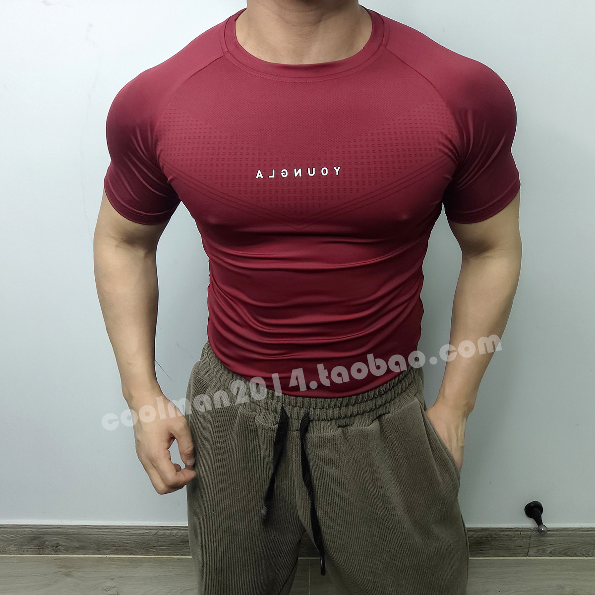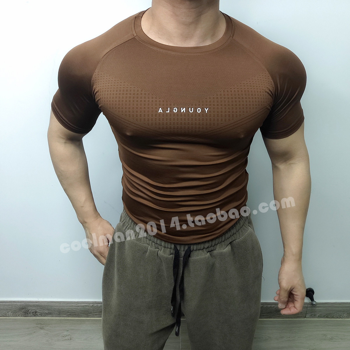牛奶丝速干男士健身短袖T恤高弹紧身户外运动上衣撸铁跑步半截袖