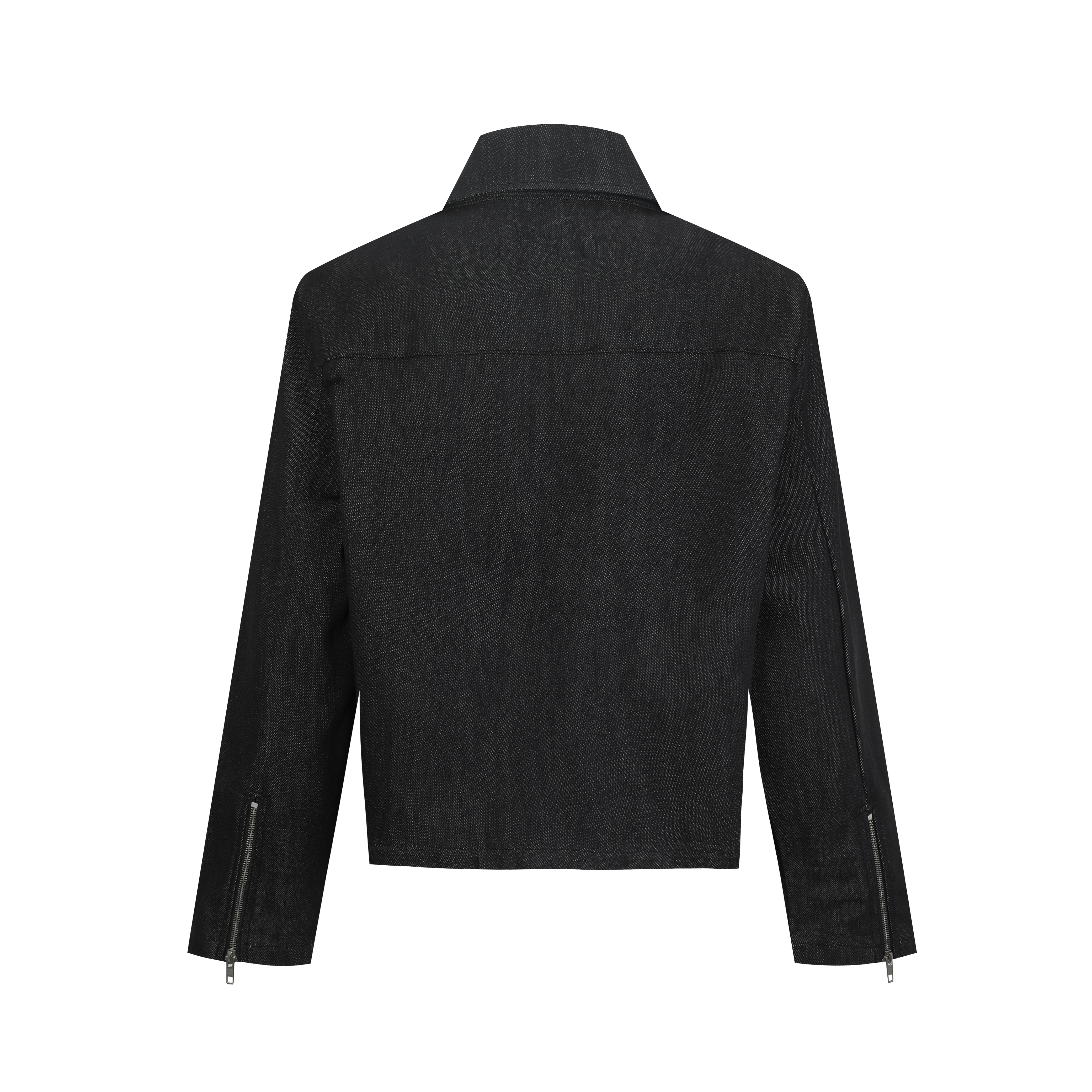 DRKK高端重磅原牛二代五斜拉链短款黑色翻领简约基础百搭夹克外套