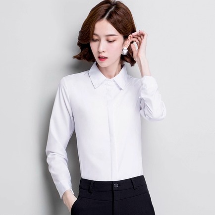 白色衬衫女长袖春秋新款韩版修身时尚气质百搭正装职业装工作服女