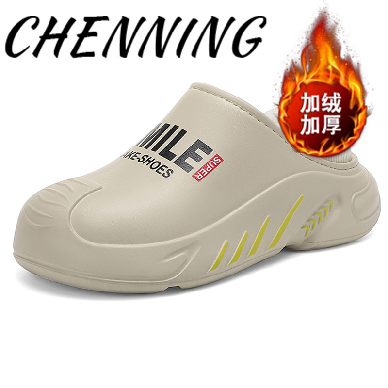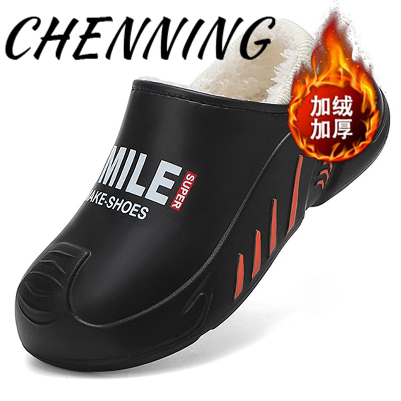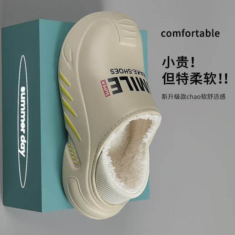 冬季新款加棉保暖情侣厚底轻便一脚蹬包跟防水棉拖鞋棉拖鞋男士