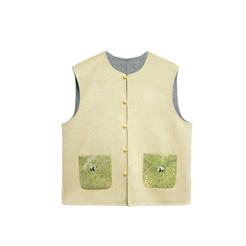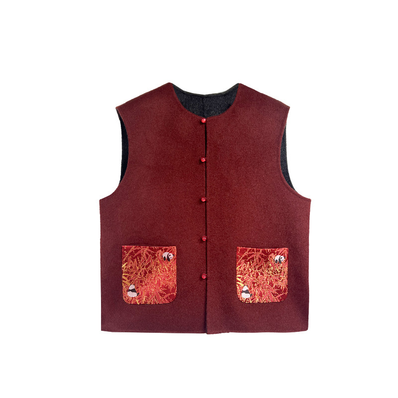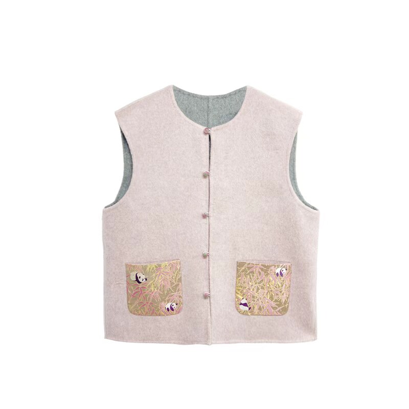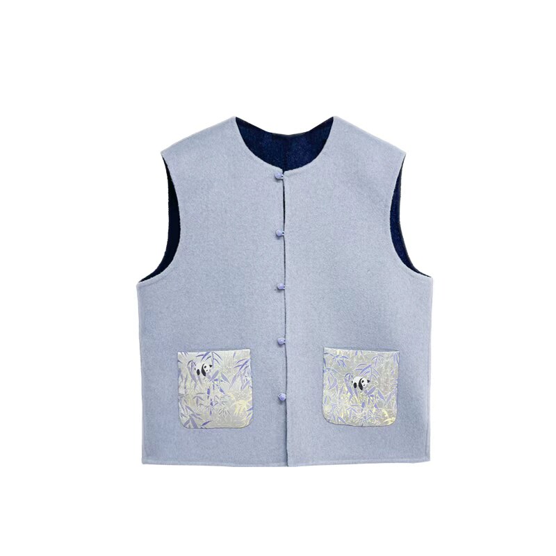 【橙庐】504902原创新中式双面呢拼接熊猫宋锦马甲 秋冬女款国风