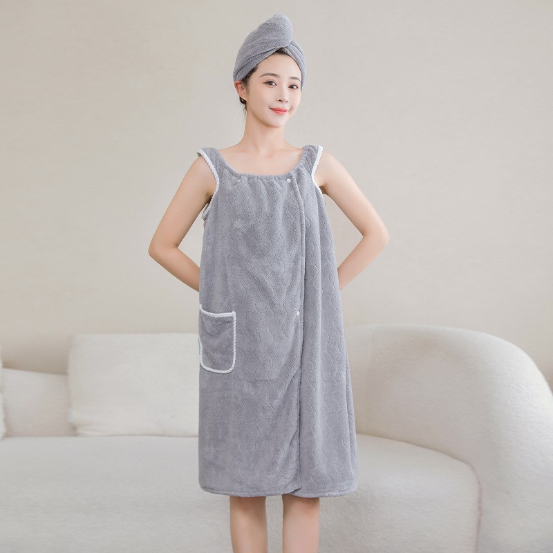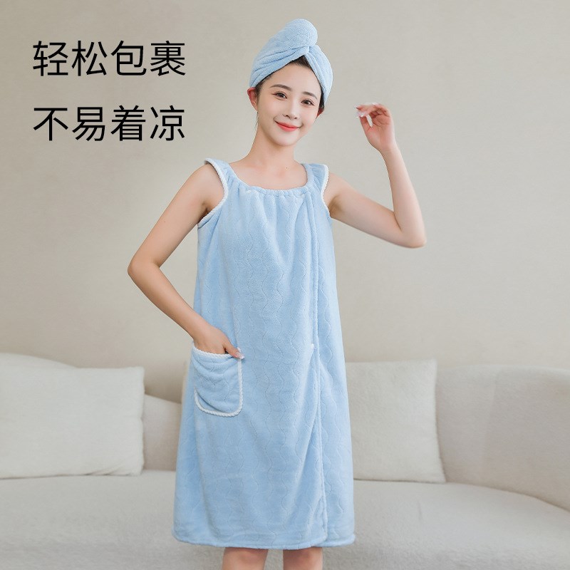 新款珊瑚绒水波纹浴裙成人学生家用洗澡可穿浴巾女士柔软吸水加厚
