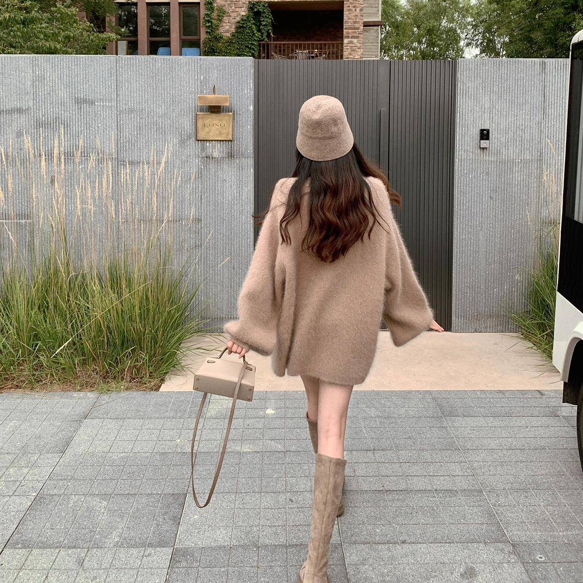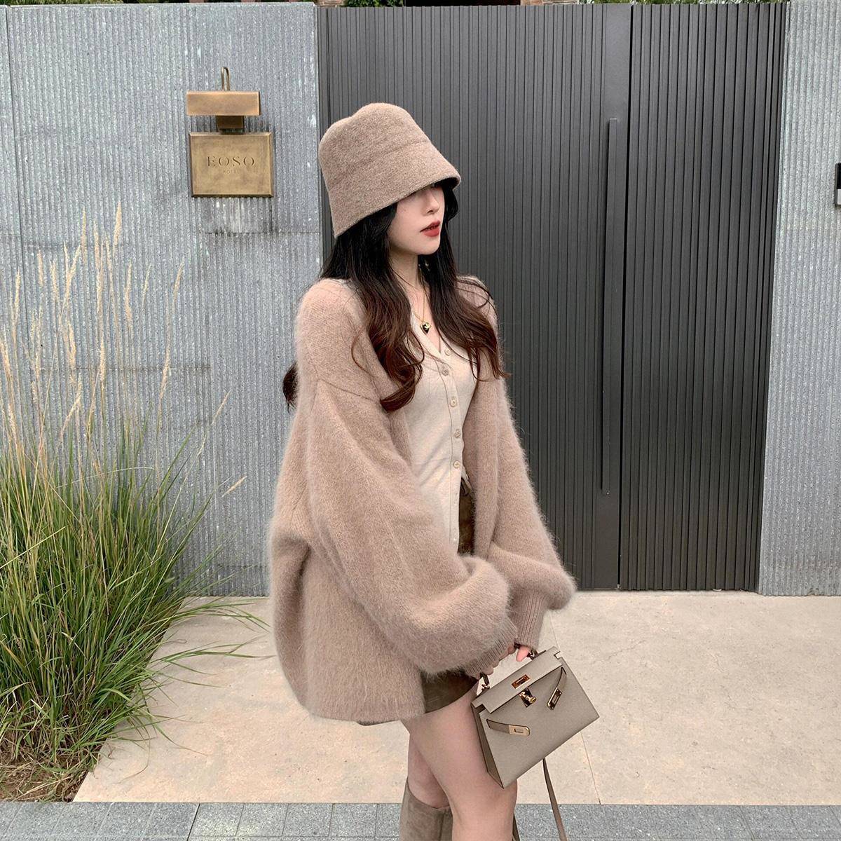 毛茸茸温柔软糯水貂绒毛衣女春秋冬宽松慵懒风高级感针织开衫外套