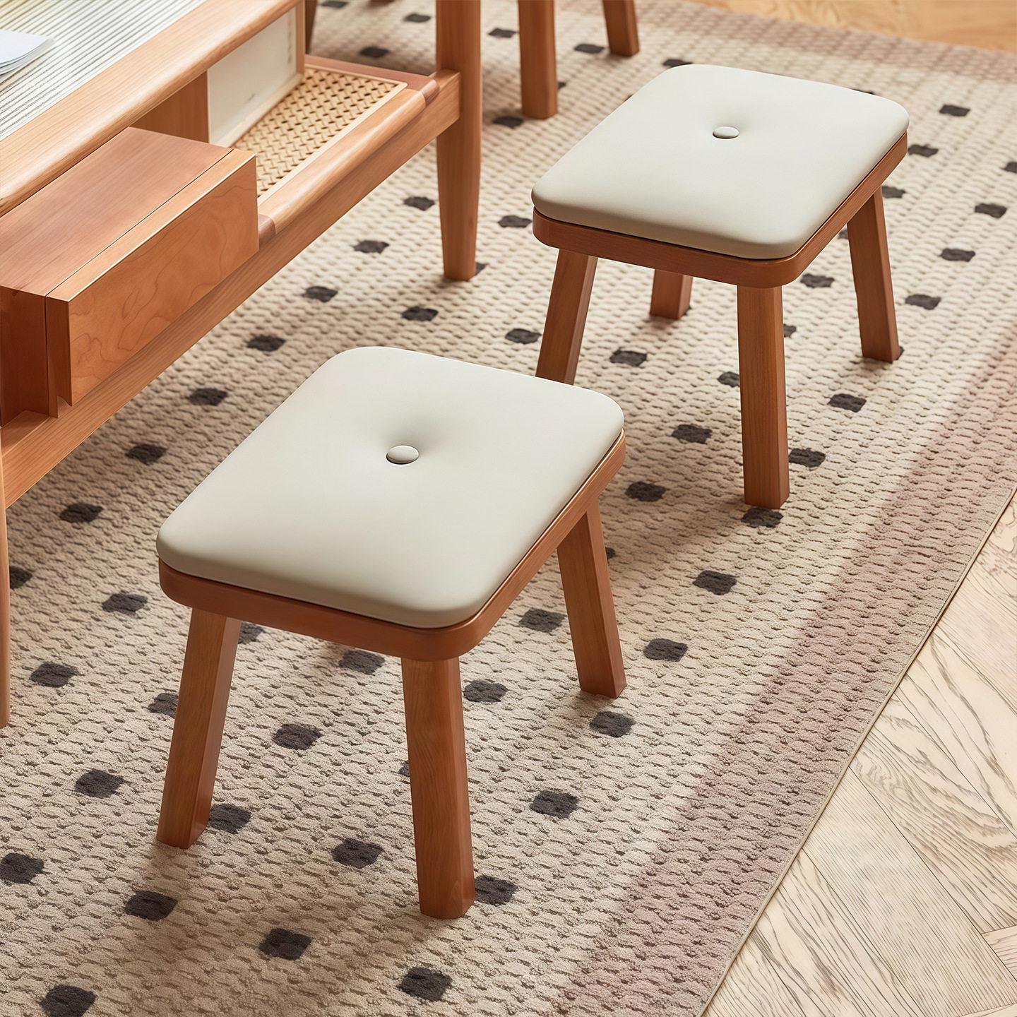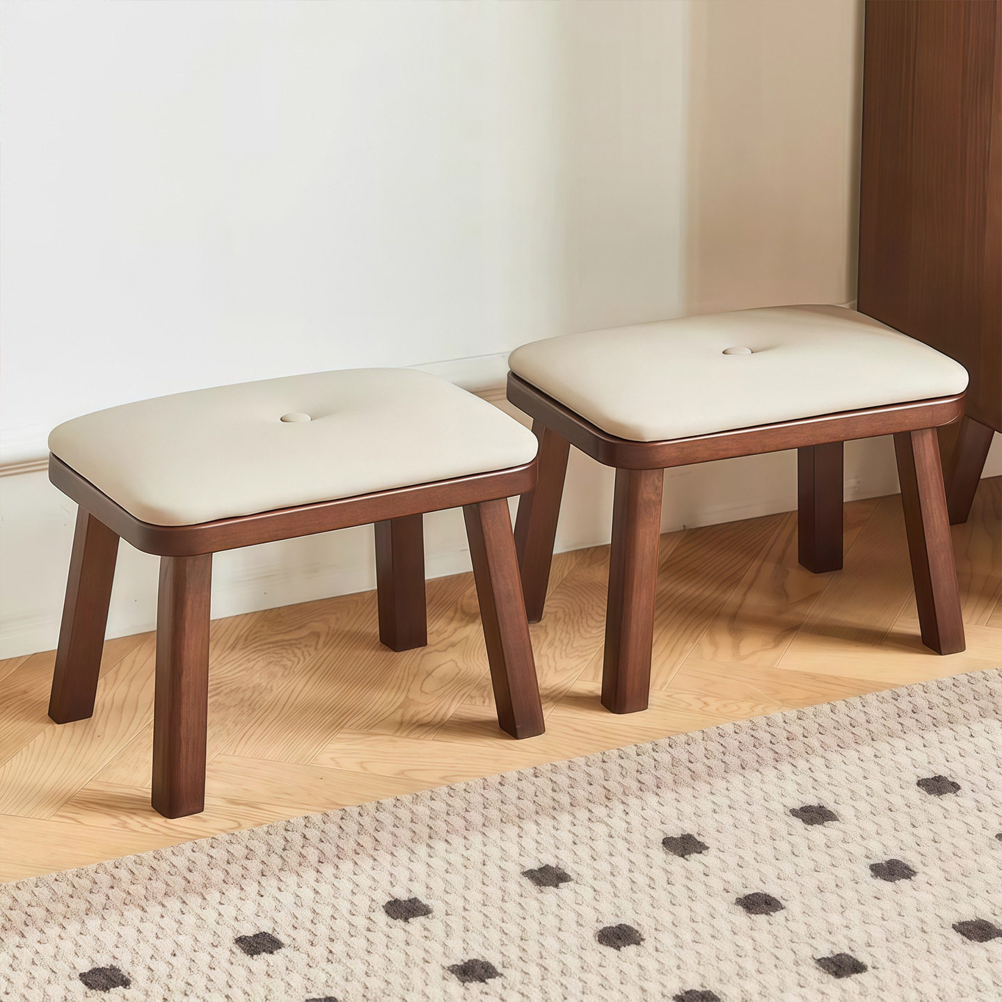 实木小凳子家用轻奢软包矮凳客厅茶几板凳沙发垫脚凳木凳方凳