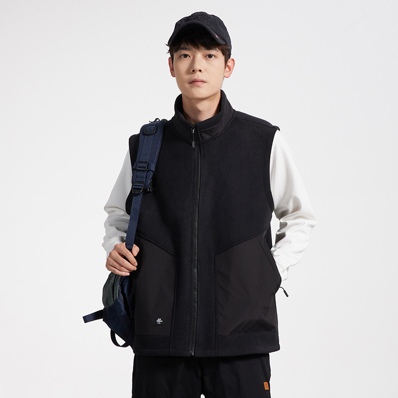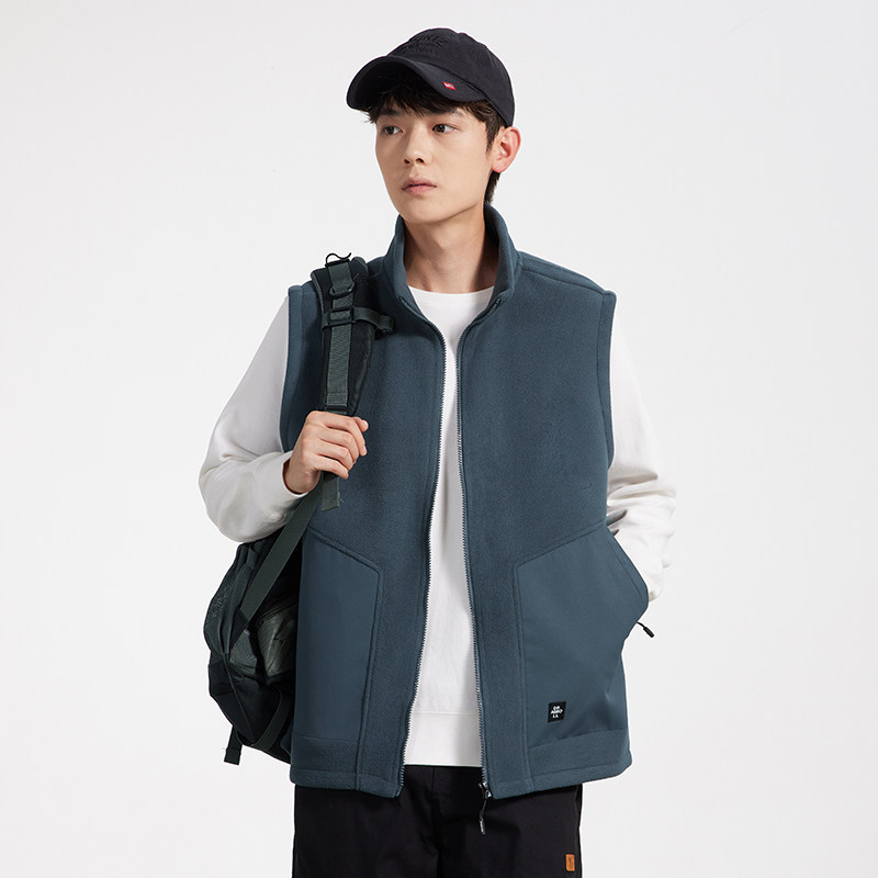 潮牌青少年马甲秋冬摇粒绒男士青年多口袋抓绒保暖学生保暖马夹
