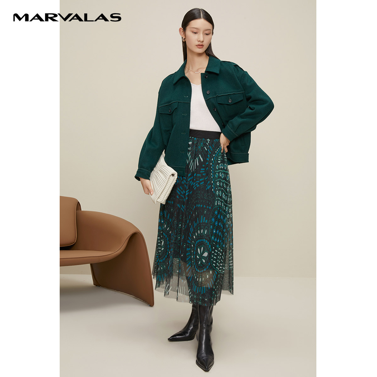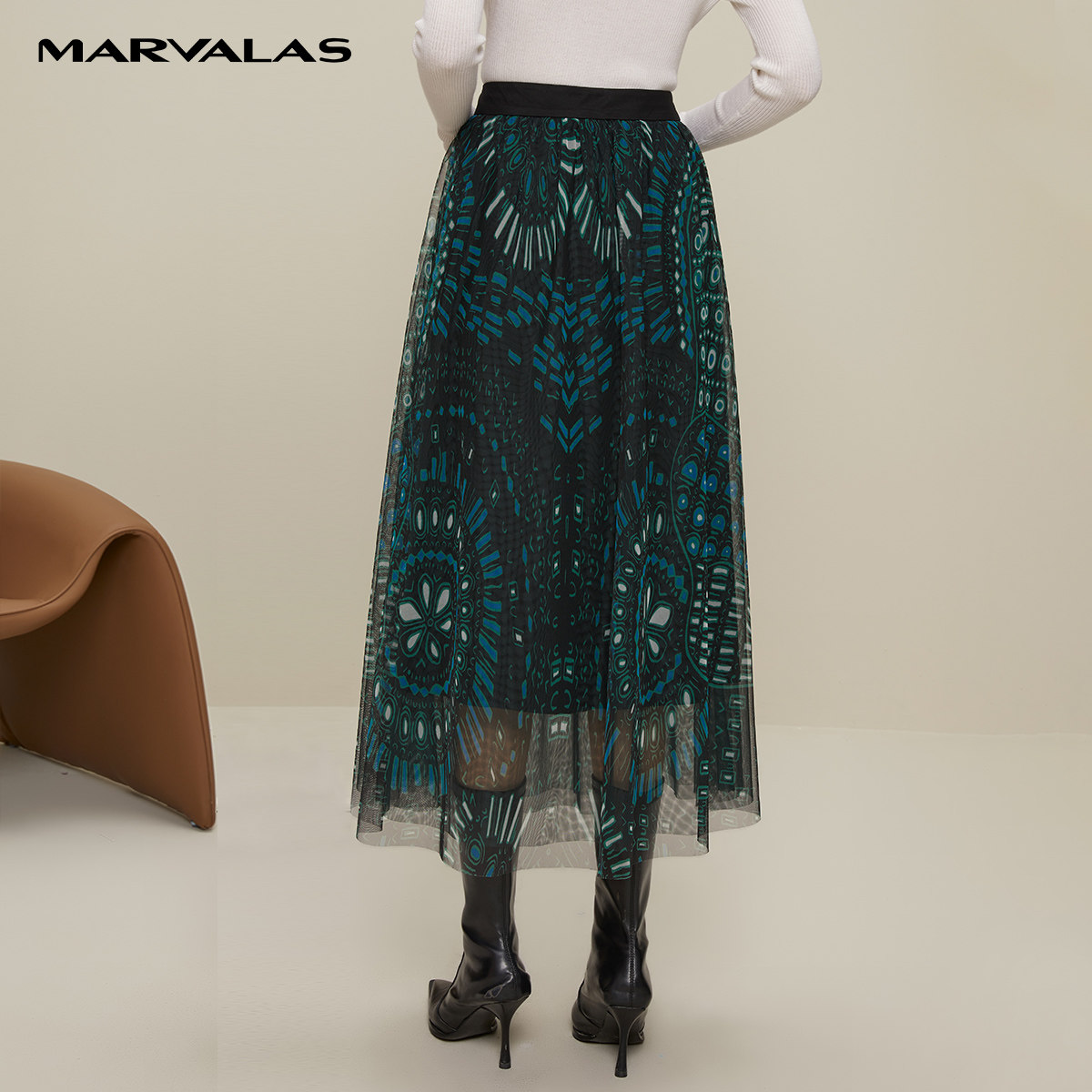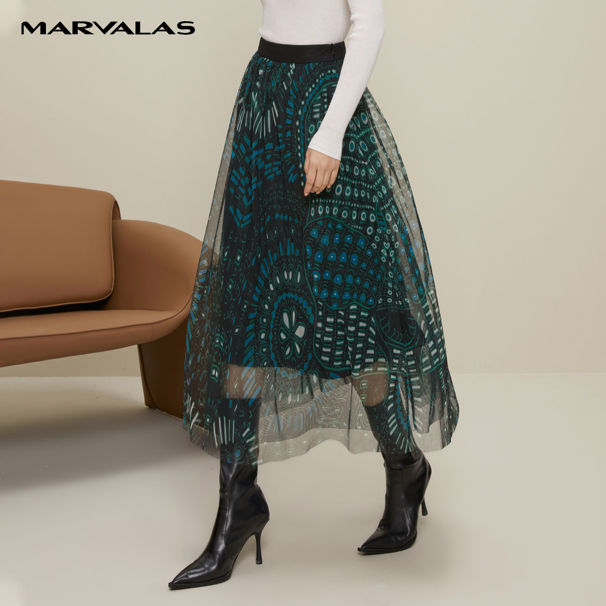 【呼呼专享】曼德诗绿花飘逸半身裙