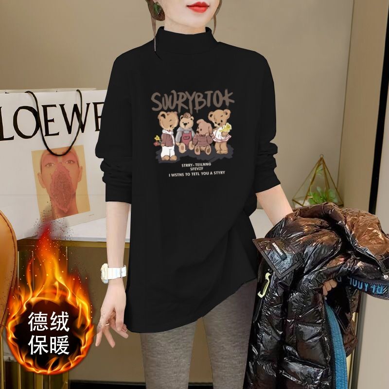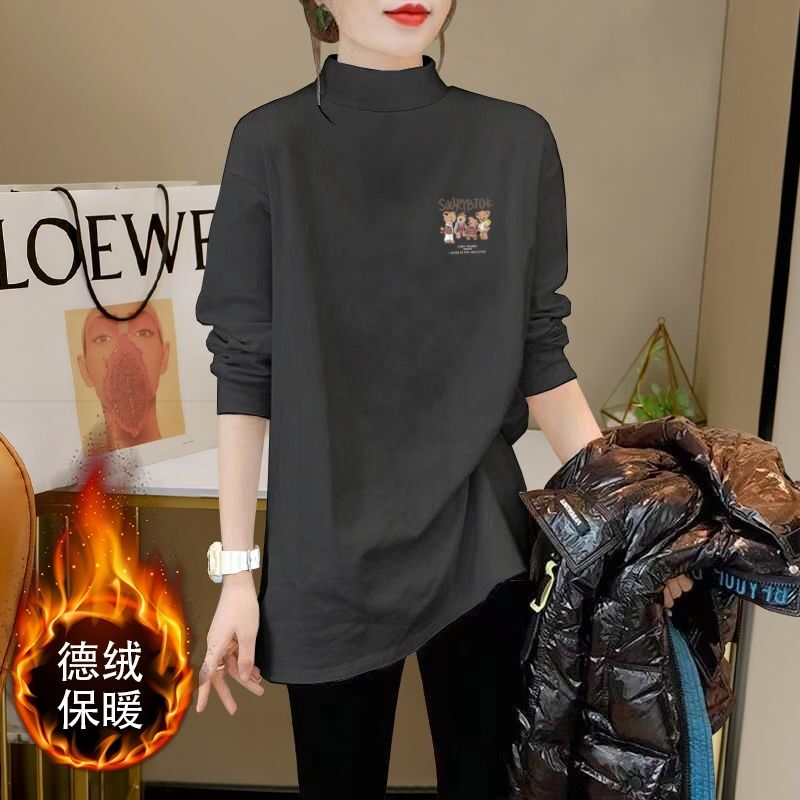 德绒中长款遮屁股半高领打底衫女长袖卫衣内搭设计感小众上衣秋冬