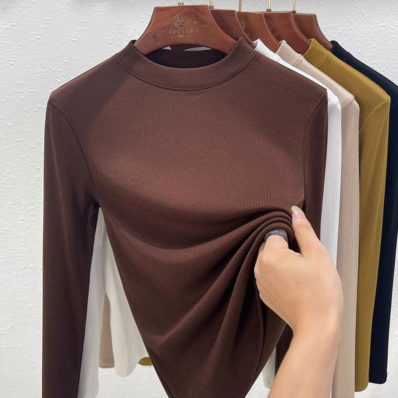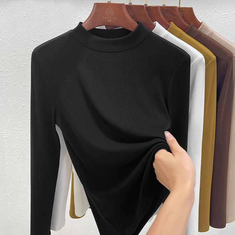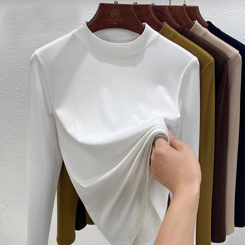 螺纹莫代尔中领打底衫女秋冬2026新款内搭长袖T恤正肩半高领上衣