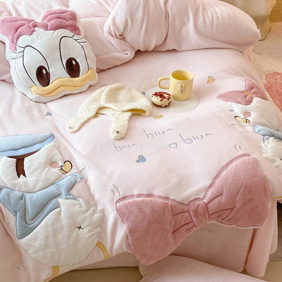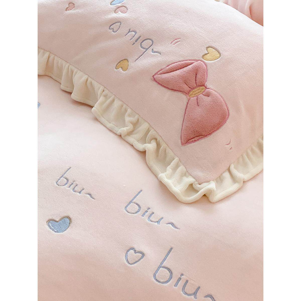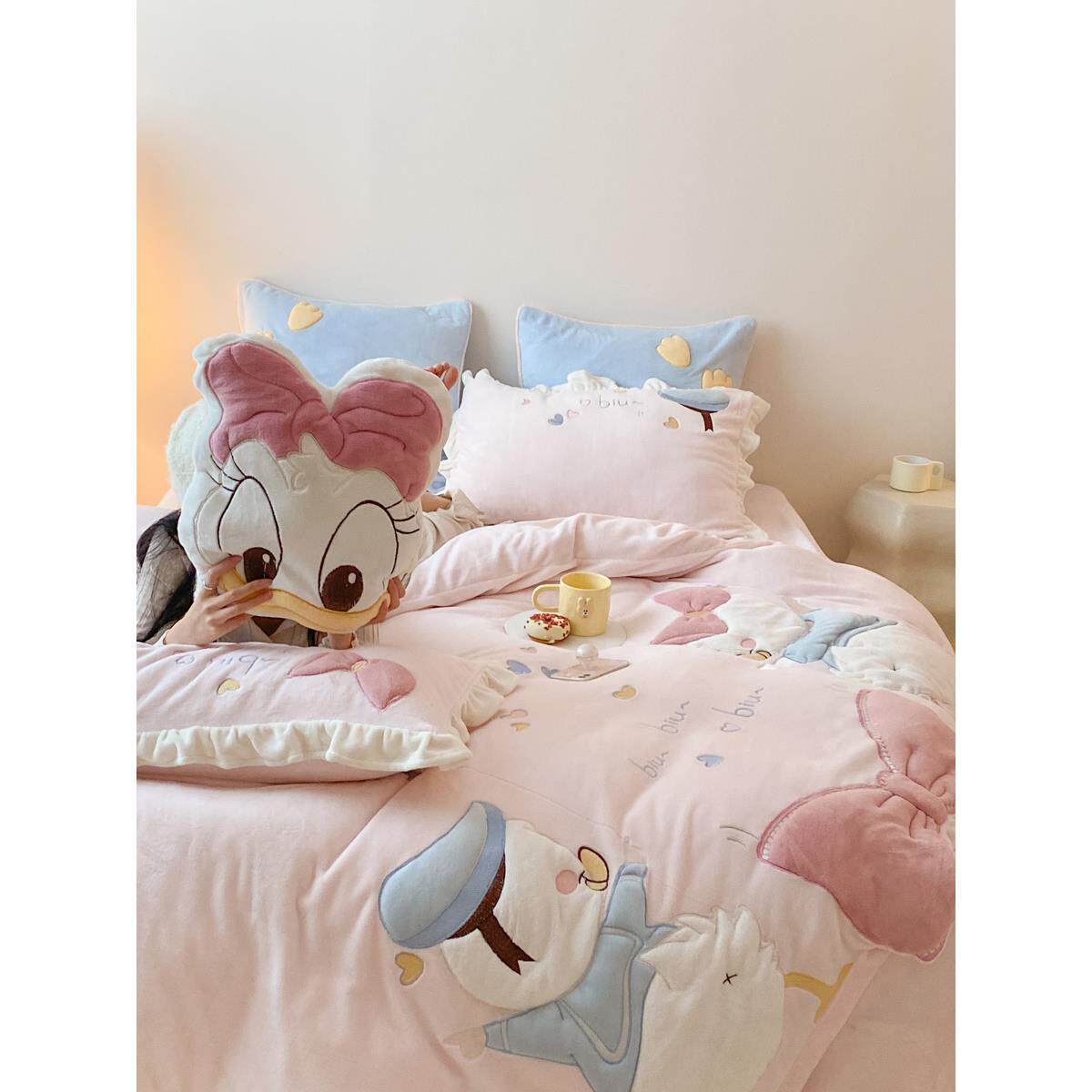 罗兰秋冬季高端牛奶绒卡通四件套少女孩房间加厚加绒保暖被套