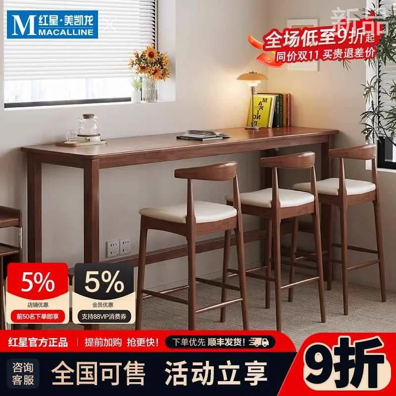 百思宜实木吧台桌家用阳台靠墙窄桌子简约长条桌酒吧奶茶店高新品