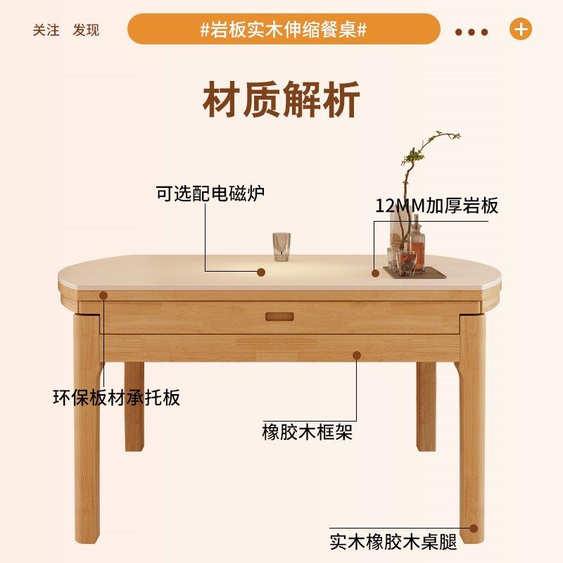 馨佰利岩板餐桌2025新款桌子客厅家用小户型饭桌实木伸缩可变