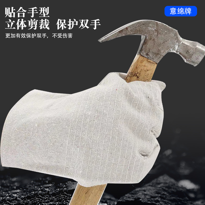 意绵帆布手套防护钢筋工劳保工地干活防滑电焊工耐磨加厚全双层