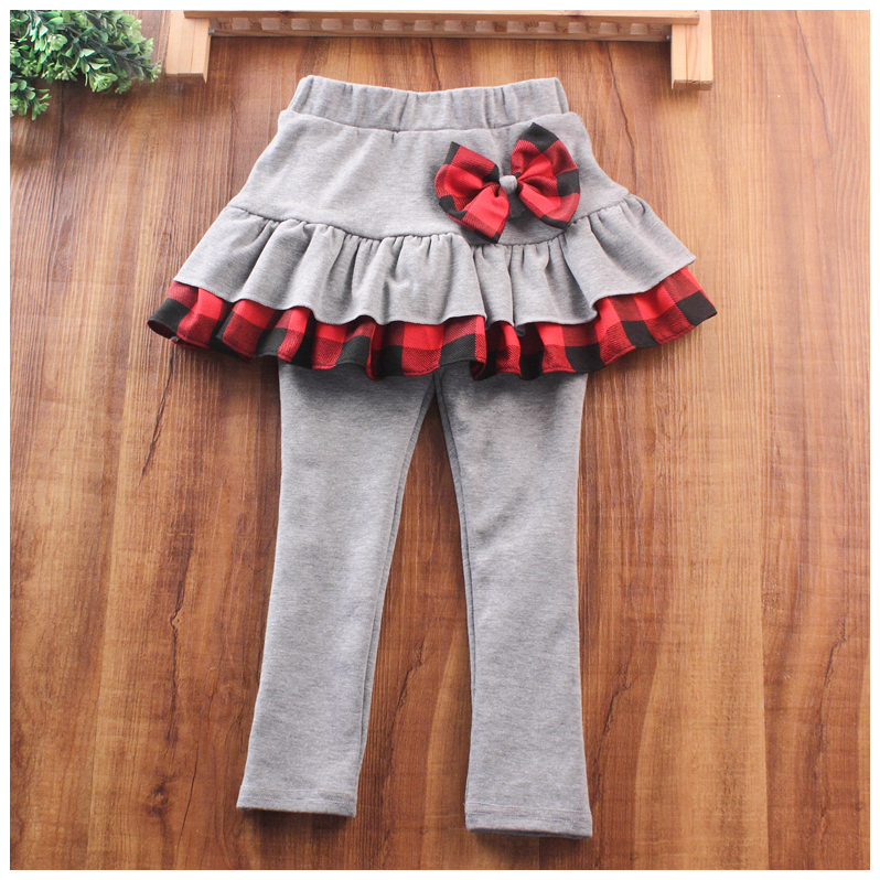 格子女宝宝打底裤女童裤子儿童裙裤秋冬童装款棉百褶裙长裤裙子