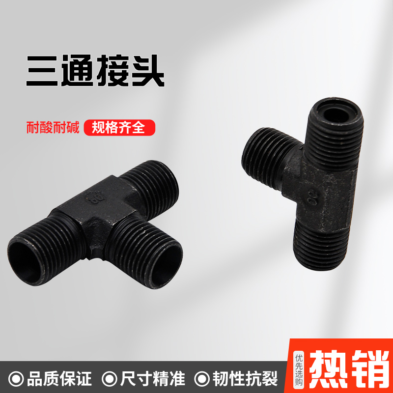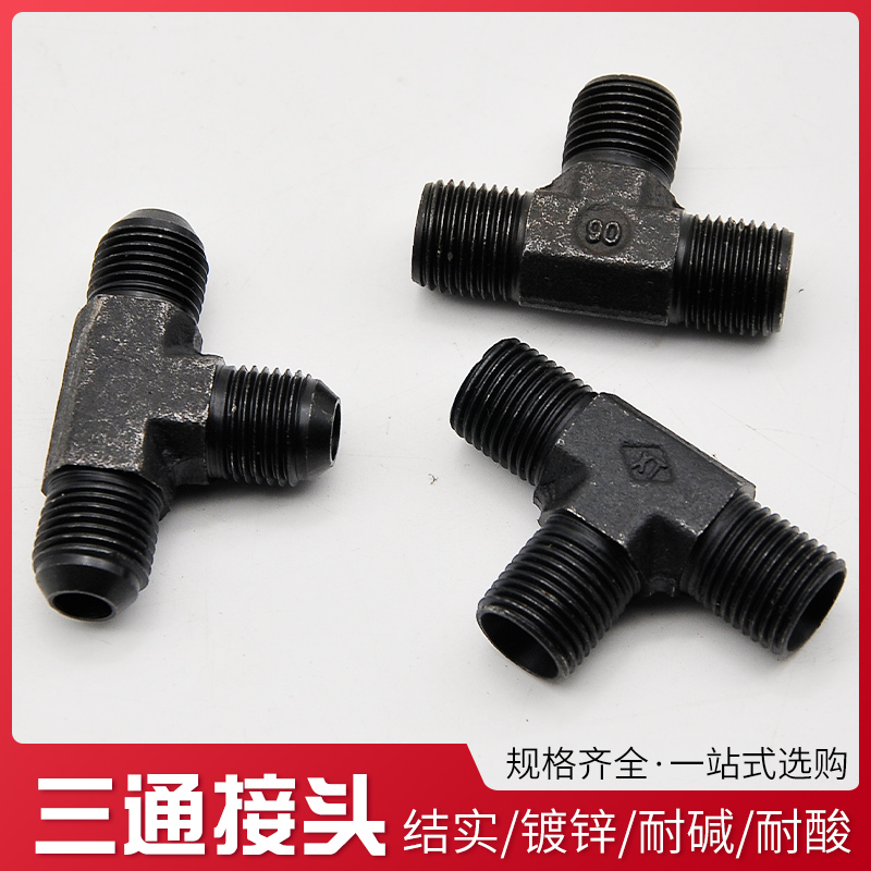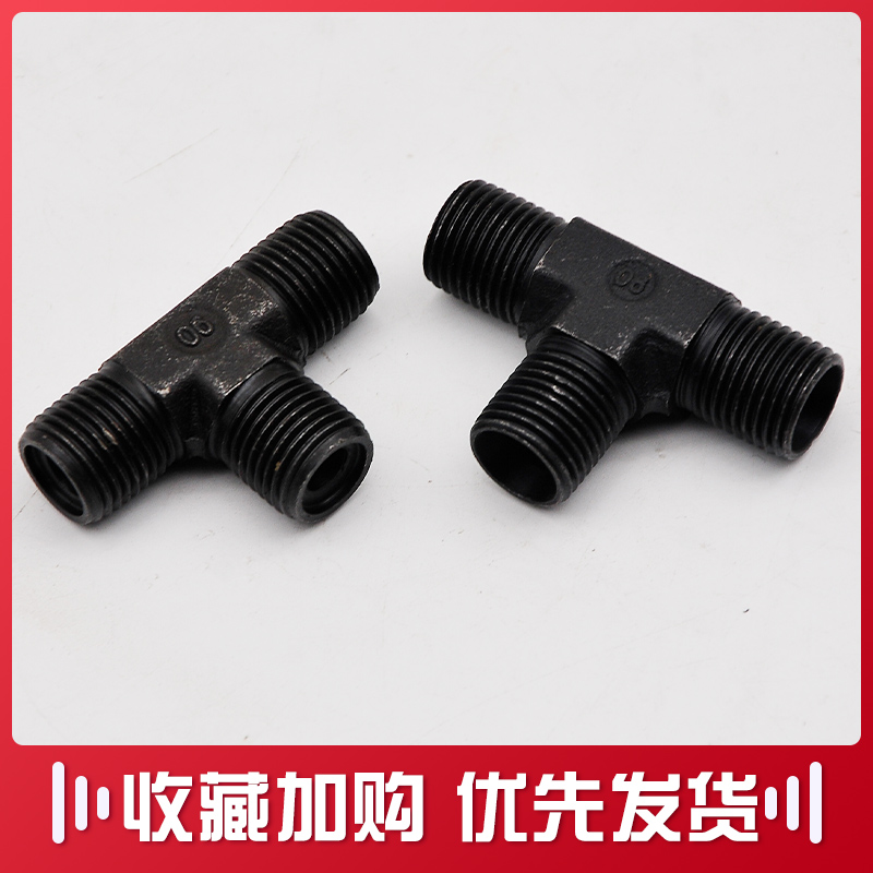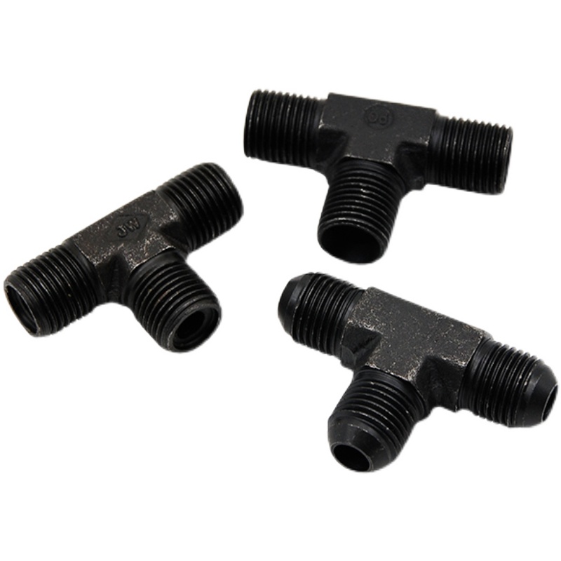 液压三通高压油管过渡接头 黑色外丝三通镀锌镀黑碳钢弯头