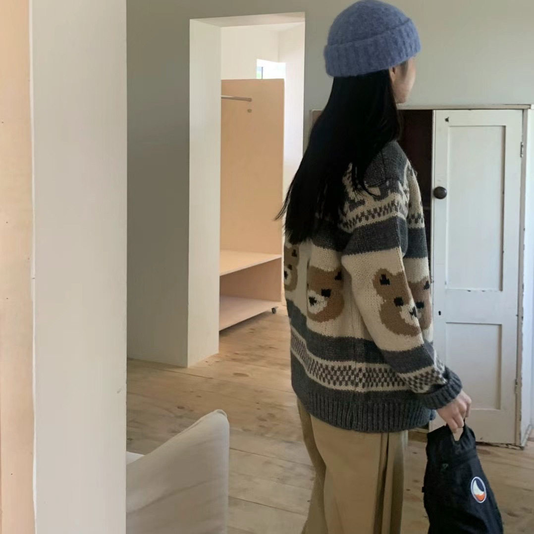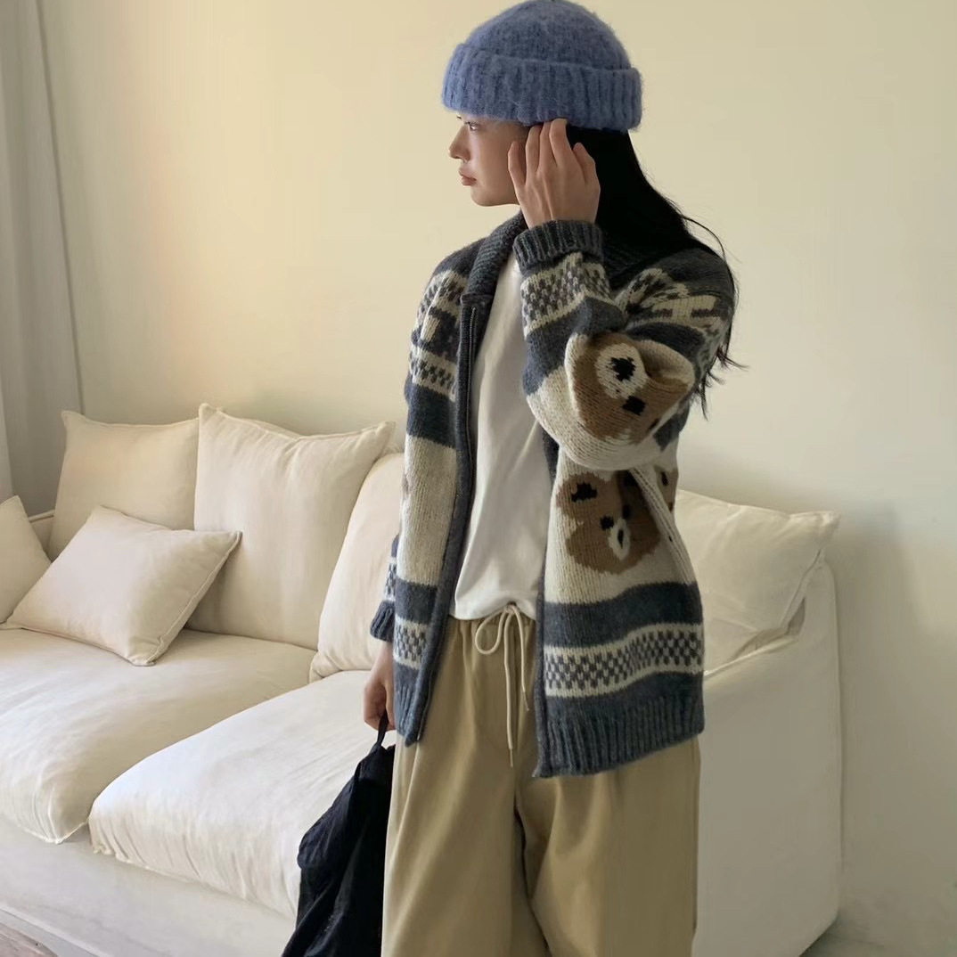GOOD STORE 2025秋冬韩国东大门新品小熊图案针织羊毛开衫外套女