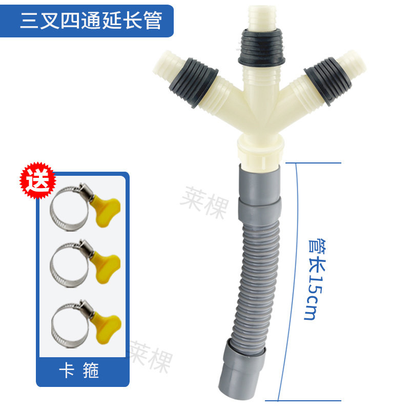 三叉四通接头延长软管地漏洗衣机排水管三合一面盆水池下水管连接