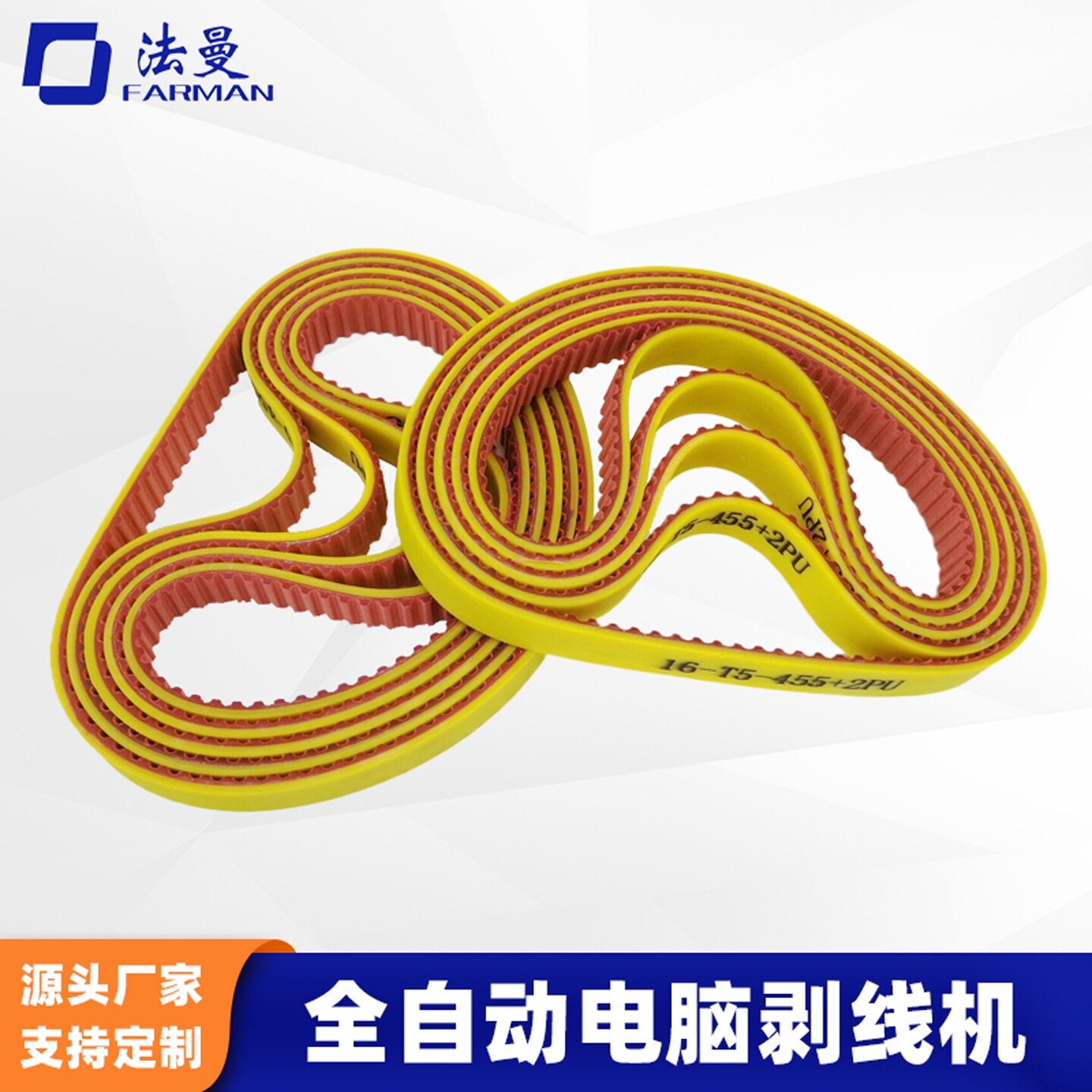 剥线机皮带16-T5-455+2PU线束机电线牵引皮带进口品质耐磨黄胶