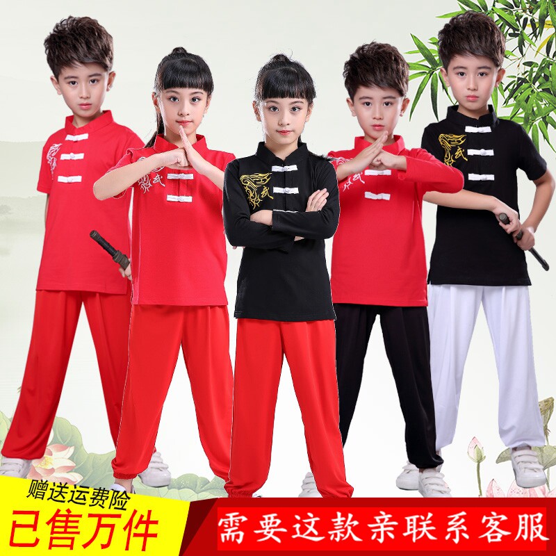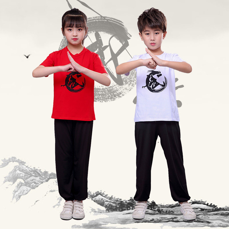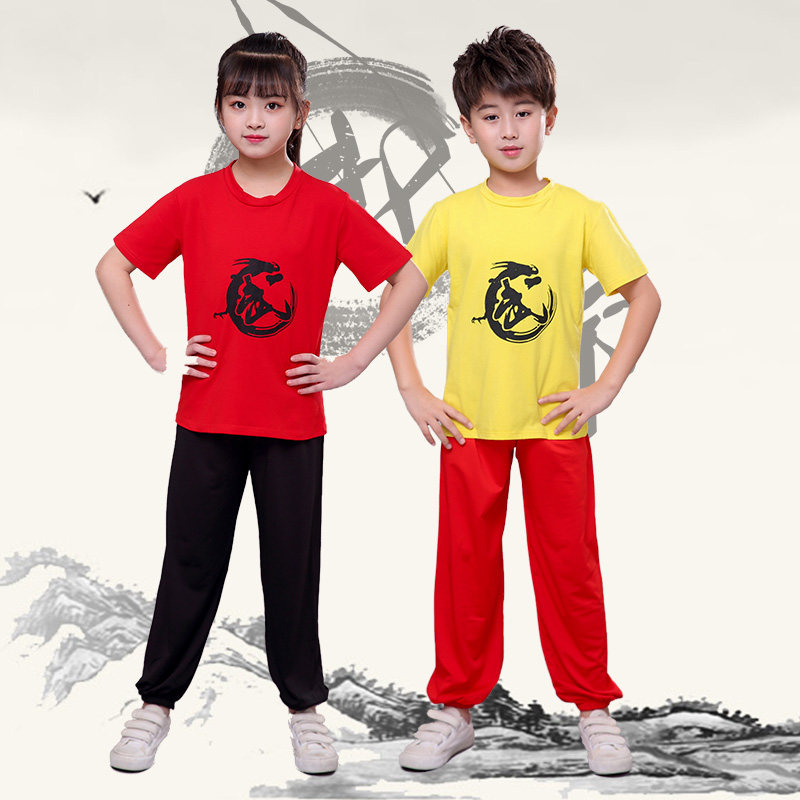 儿童武术服装纯棉夏季短袖练功服幼儿咏春太极拳武术训练表演服装