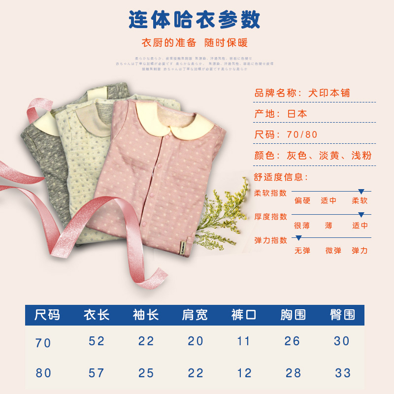 日本犬印本铺INUJIRUSHI婴儿衣服宝宝两穿连体衣儿童哈衣春夏秋冬
