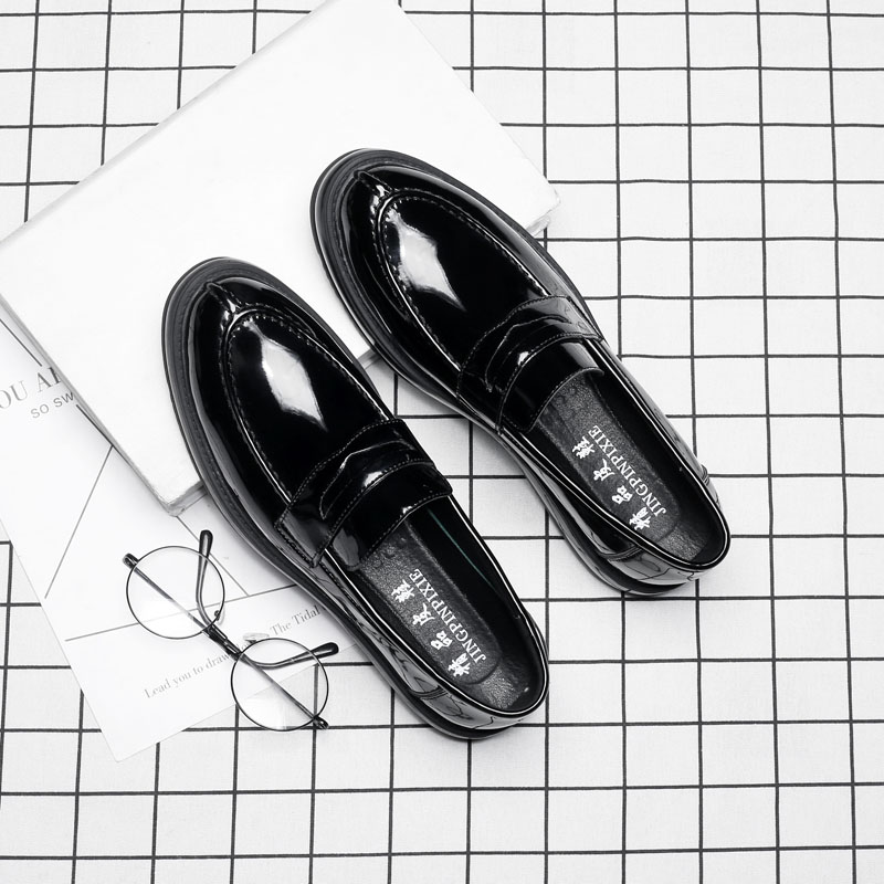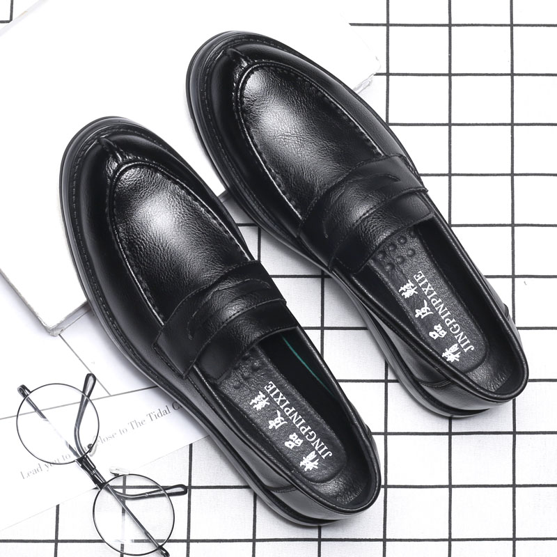 时尚潮流男士套脚小皮鞋厚底增高韩版英伦懒人豆豆鞋青年发型师鞋