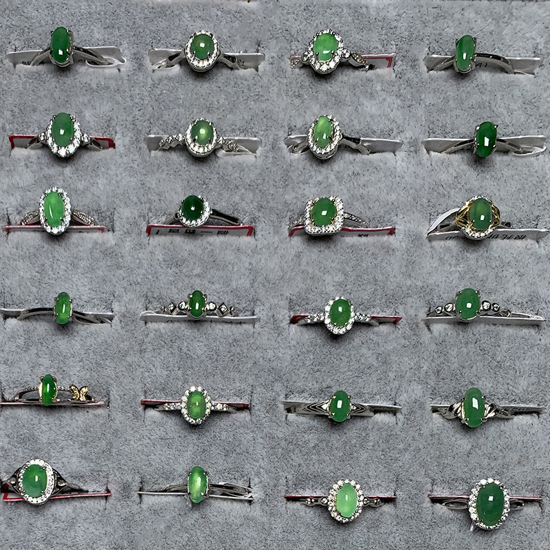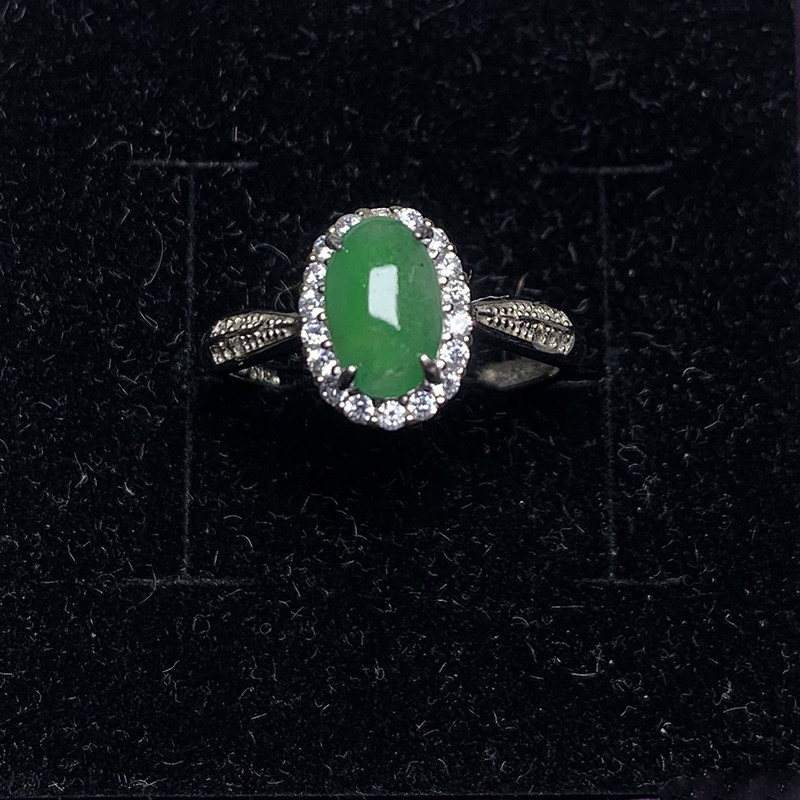 首页> 配饰> 缅甸A货翡翠戒指冰种阳绿蛋面裸石满绿玉戒面925银镶嵌男女款礼品