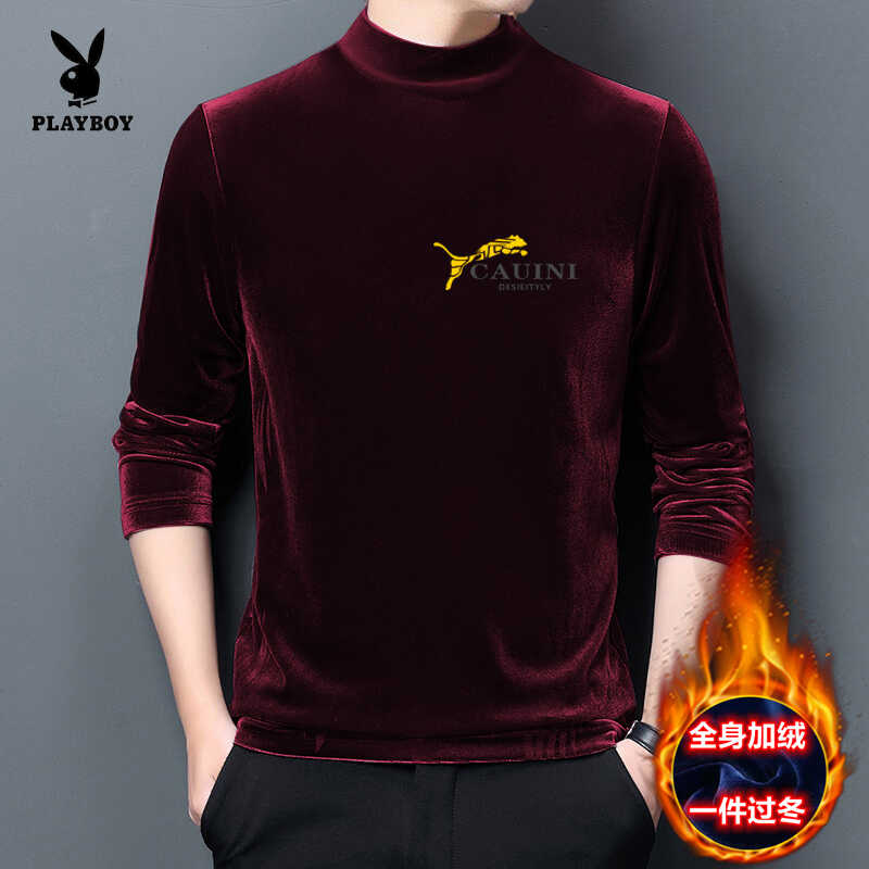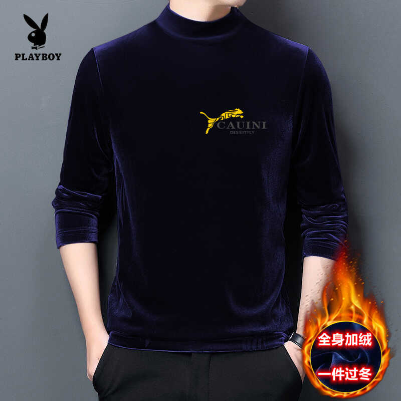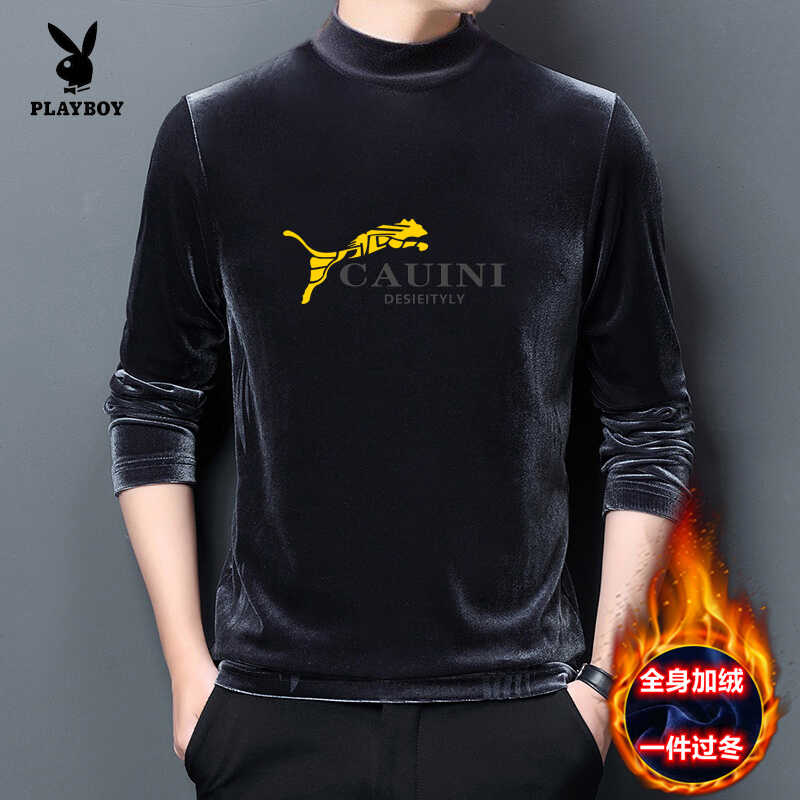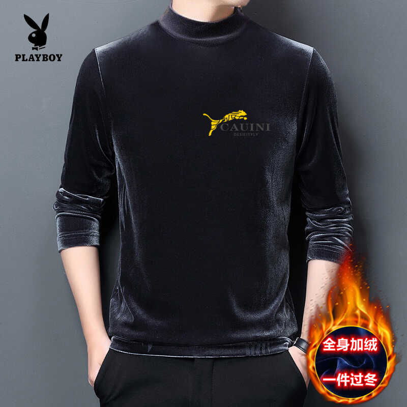 金丝绒卫衣 男秋冬修身半高领男士长袖t恤加绒加厚保暖打底衫上衣