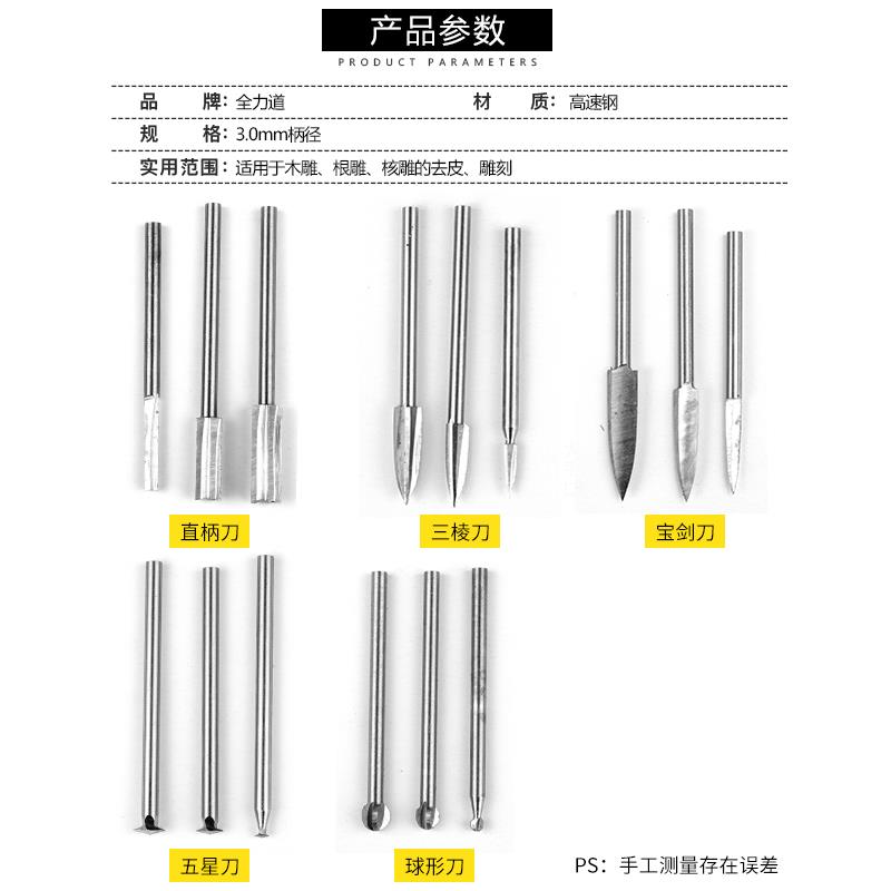 全力道3.0木工雕刻刀核雕铣刀台磨雕刻机工具电动根雕打磨去皮刀