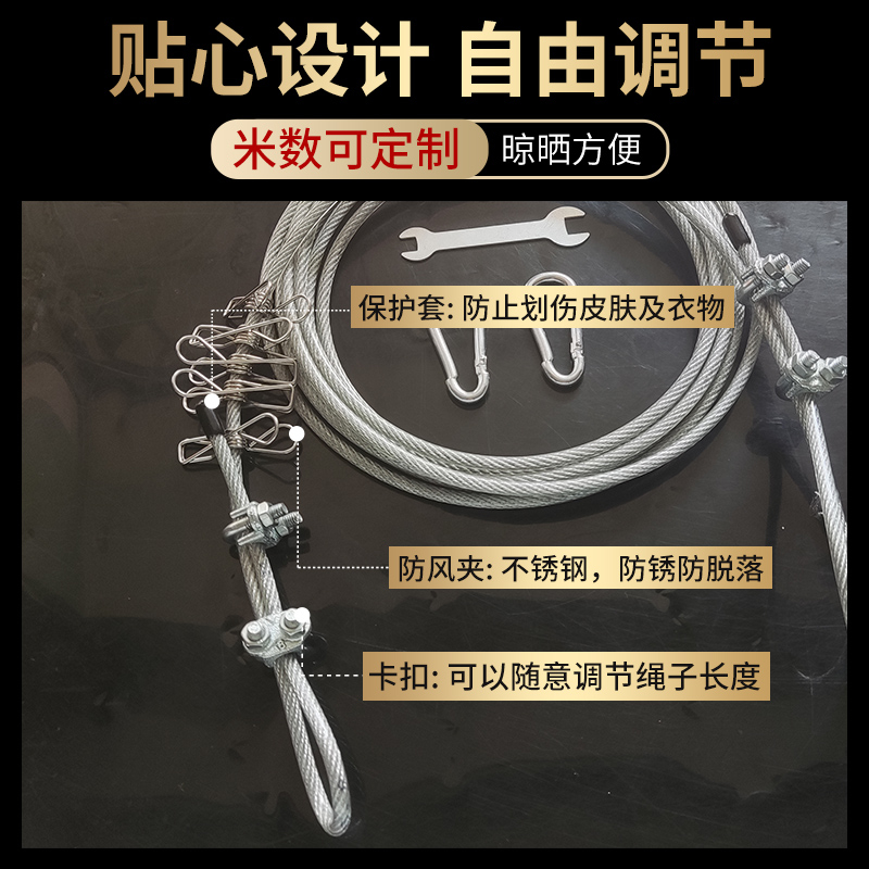万能钢丝晾衣绳凉晒被子加粗室外户外内阳台拉紧家用挂衣服的绳子