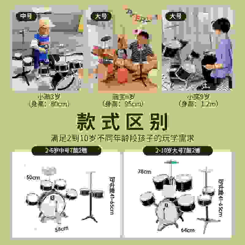 俏娃宝贝儿童架子鼓爵士鼓儿童初学者敲打鼓宝宝益智玩具男3-6岁1