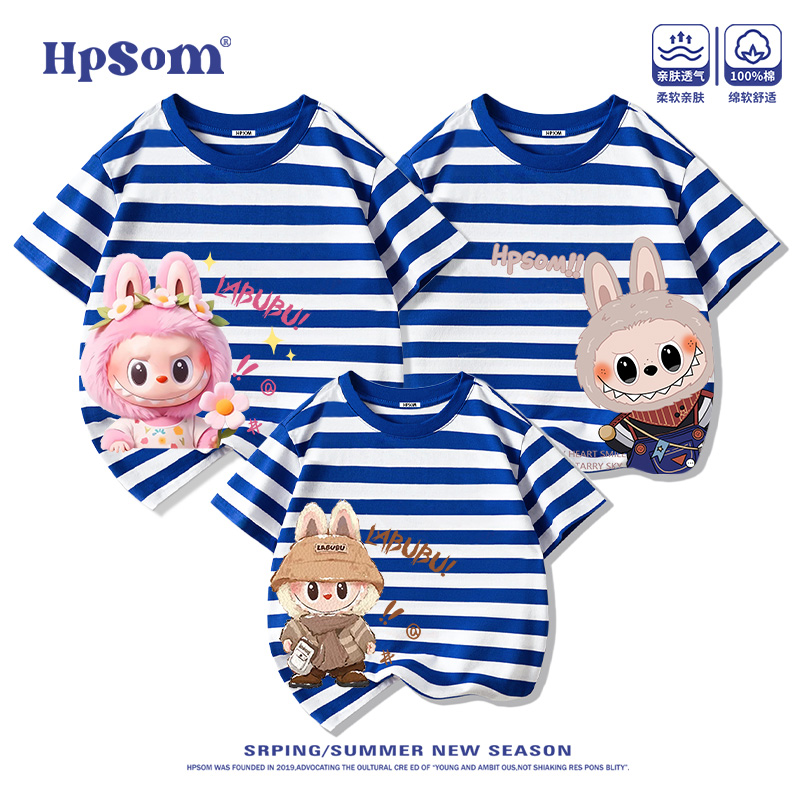 亲子装儿童短袖2025新款夏季T恤一家三四口半袖纯棉透气卡通上衣