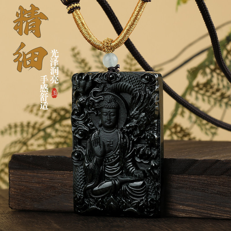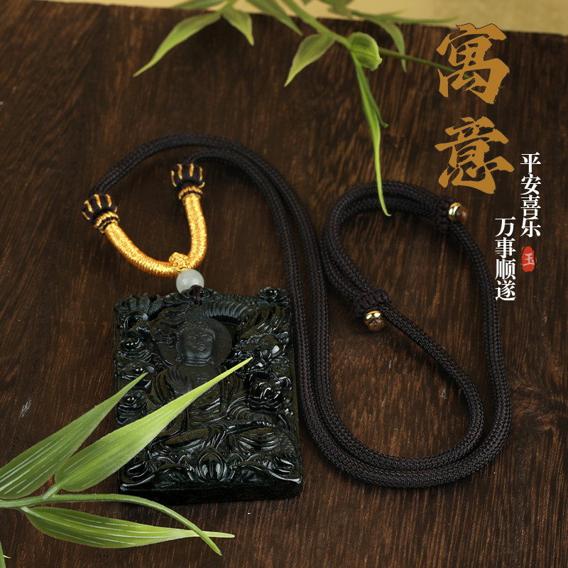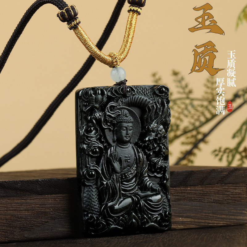 唐今玉天然墨翠a货翡翠龙尊王佛佛像神龙玉石吊坠冰种挂件玉坠玉