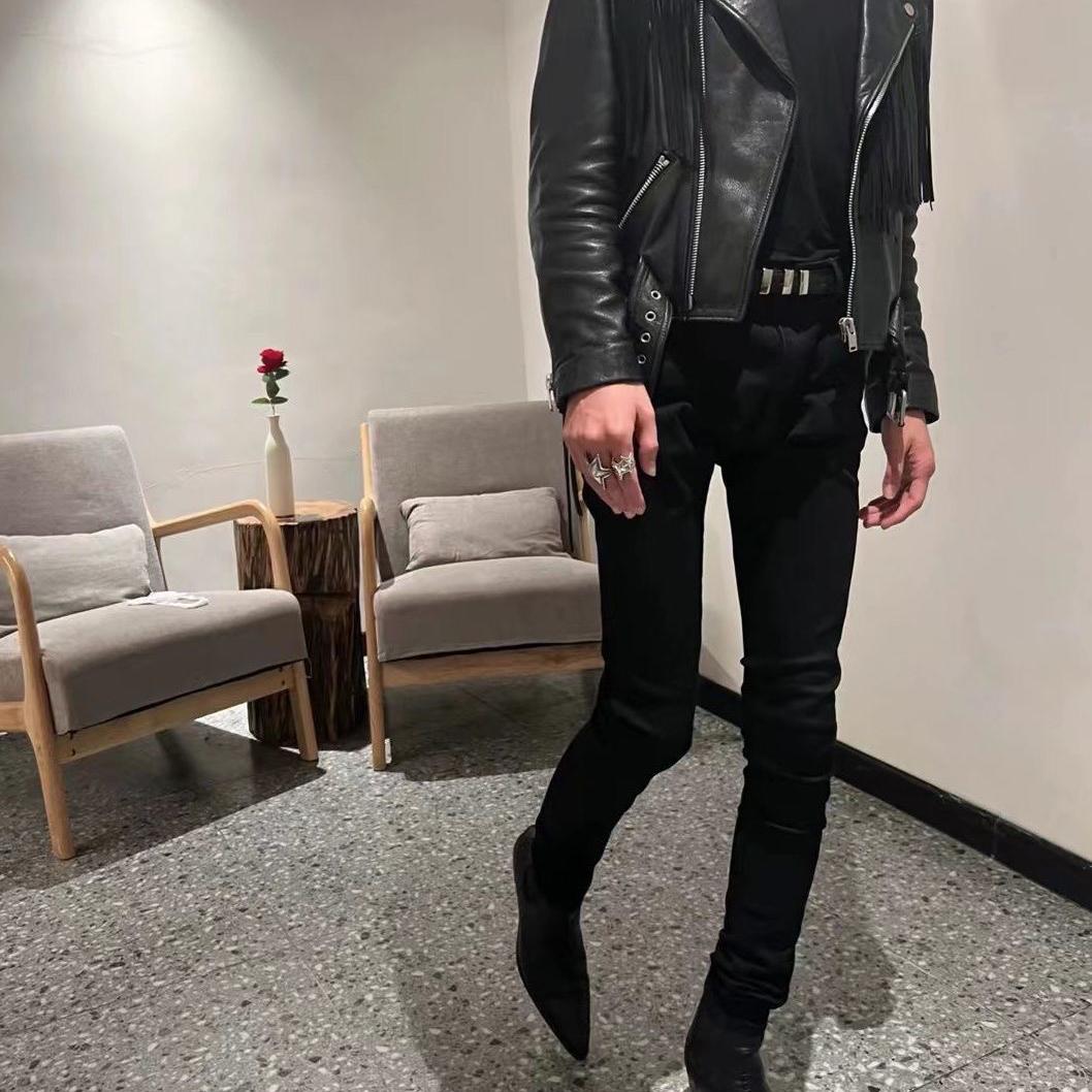高街冬季高弹力黑色紧身牛仔裤男修身显瘦小脚裤潮流百搭休闲长裤