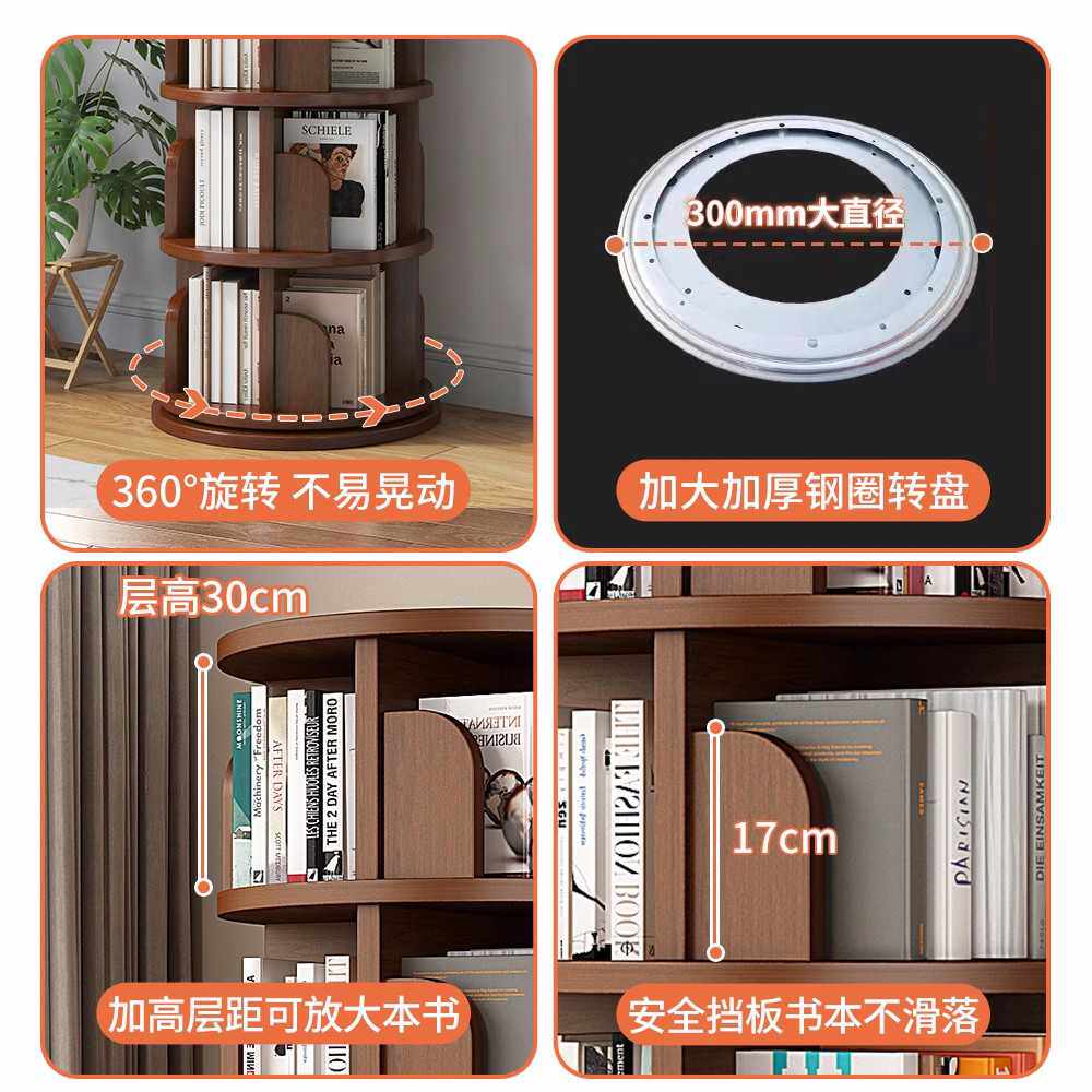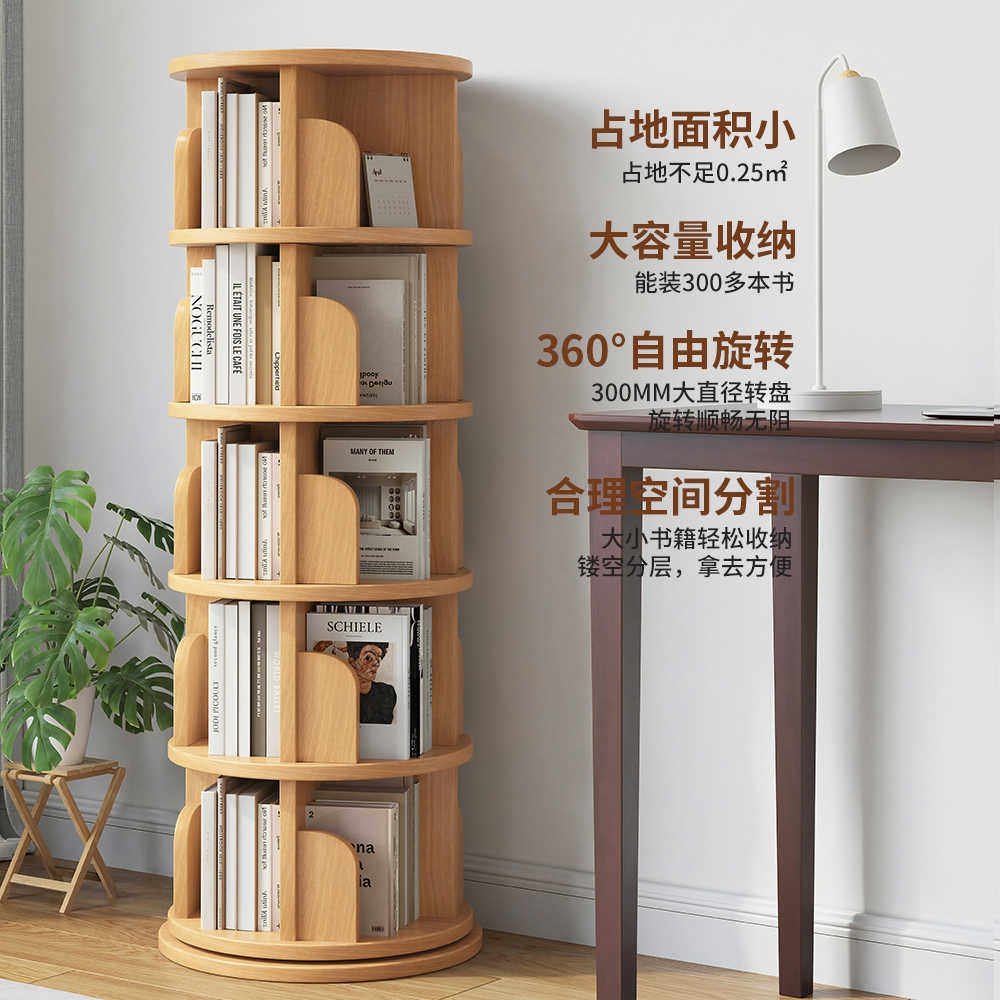 全实木旋转书架360度书柜网红收纳家用客厅可移动儿童落地置物架