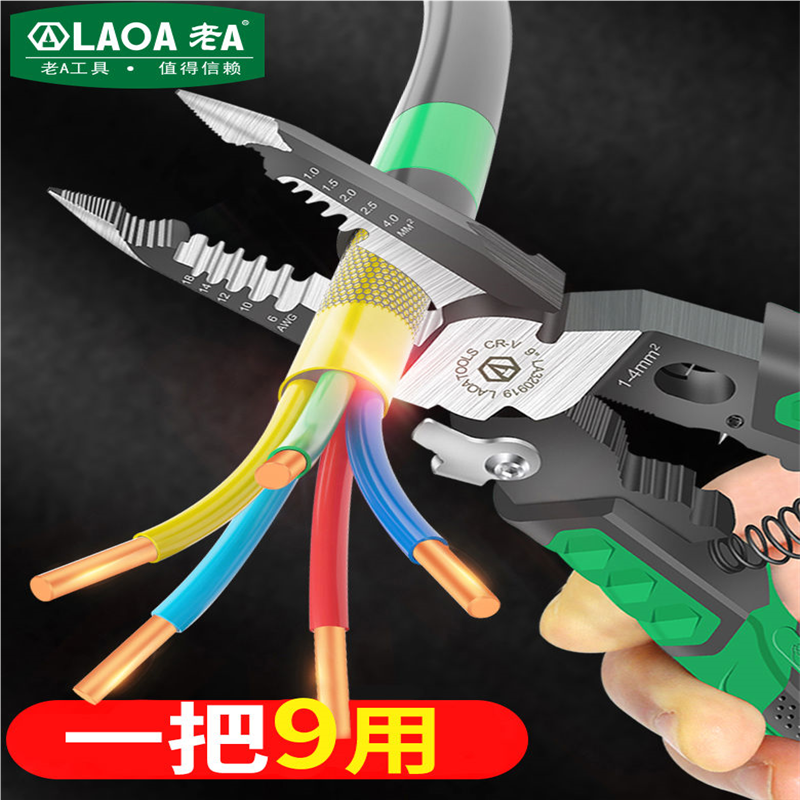 老A 9合1多功能尖嘴钳工业级剥线钳剪线钳迷你电工钳手工专用