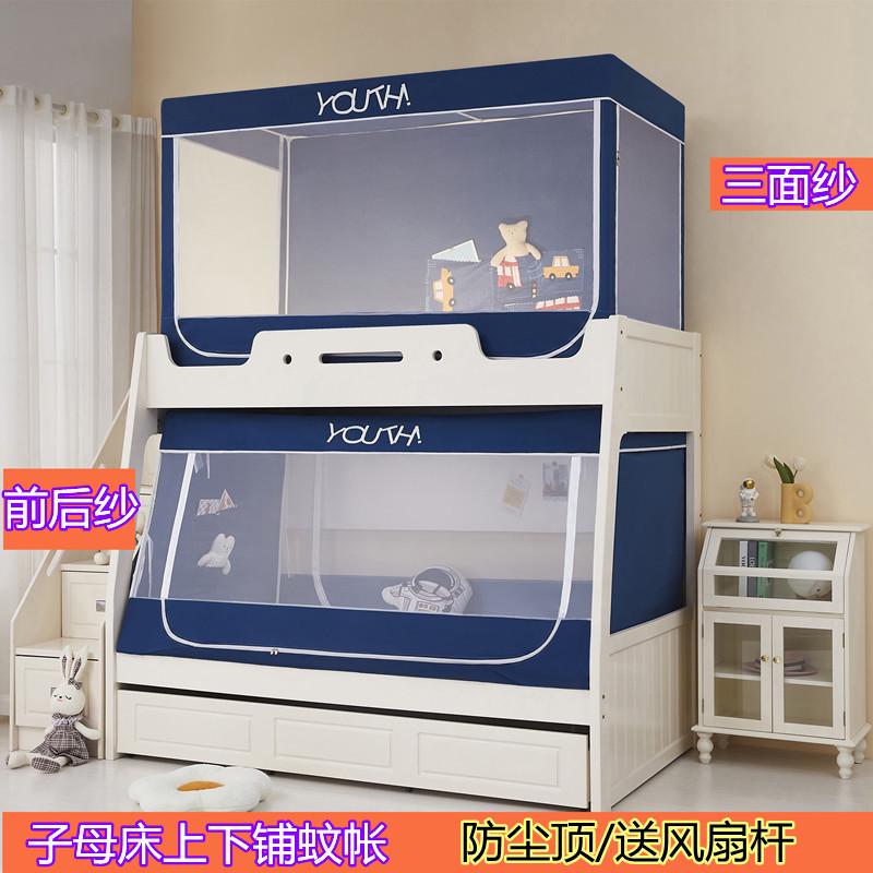 子母床梯形上下床梯柜木床专用蒙古包儿童床蚊帐三开门蚊帐家用