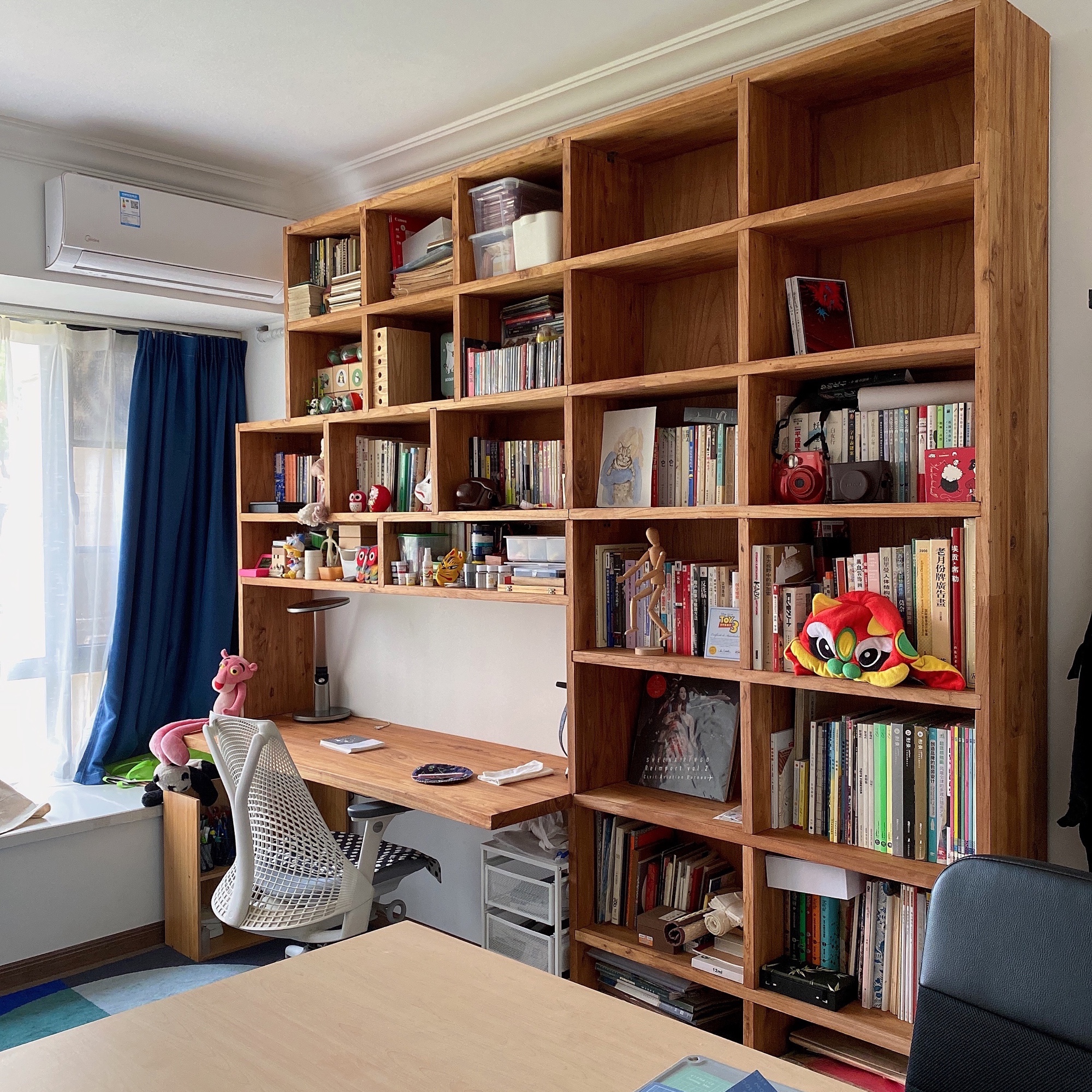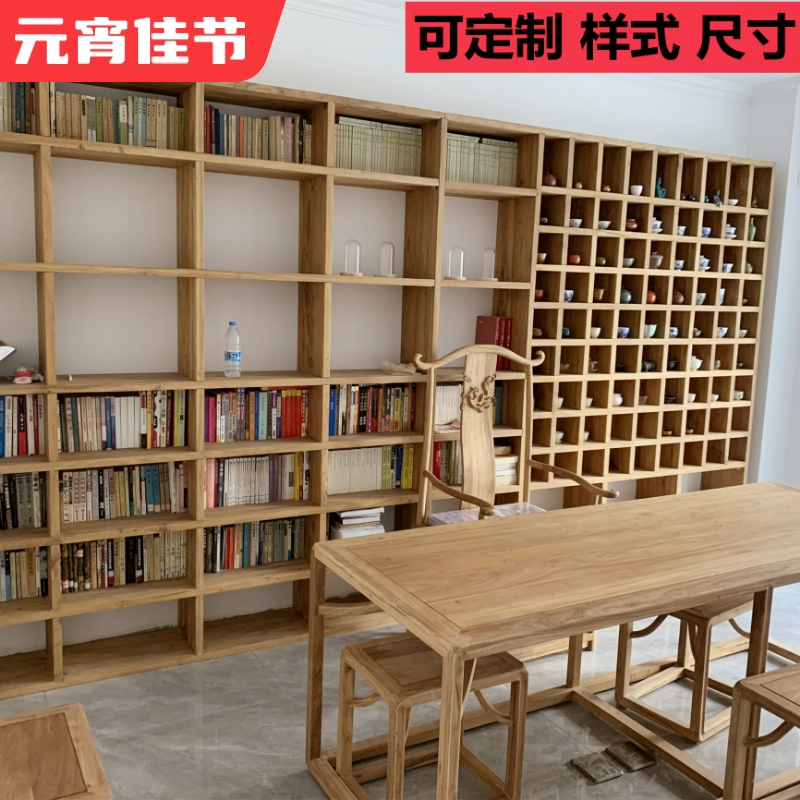 定制老榆木书架满墙大书架隔断实木书柜格子架整墙落地多层置物架