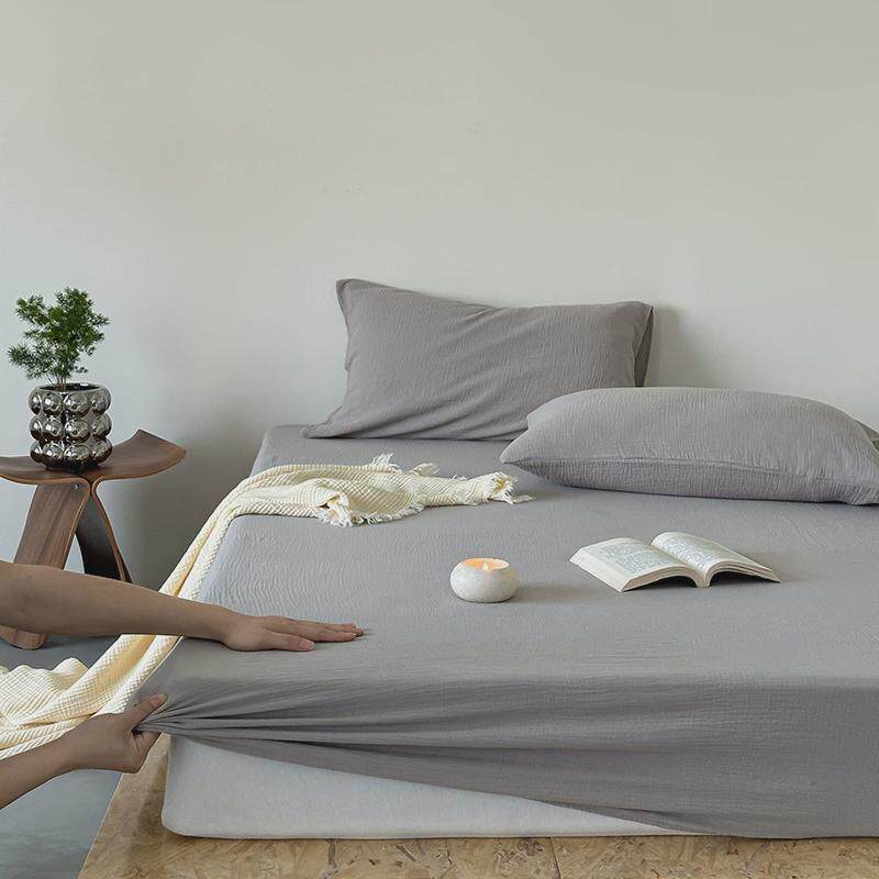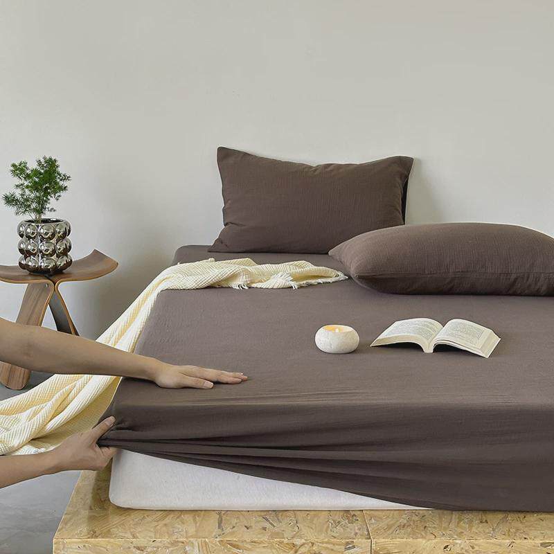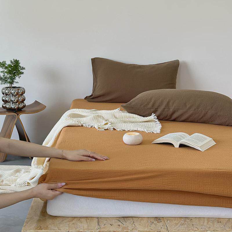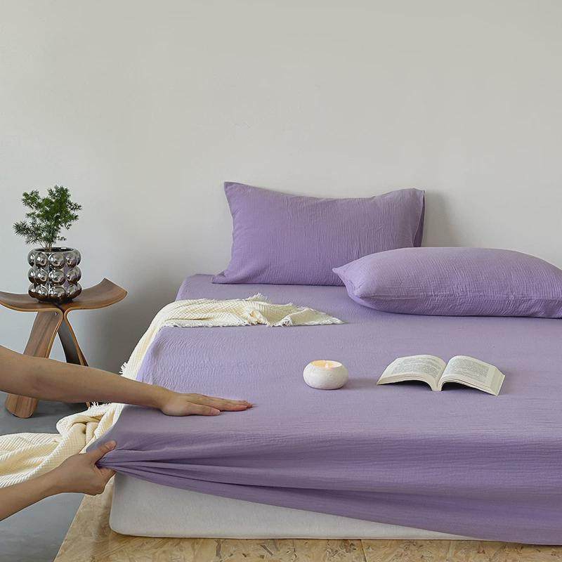 ins风纱纯色全棉双层皱皱裸睡单床笠床罩席梦思床垫保护套用品夏