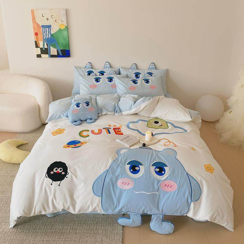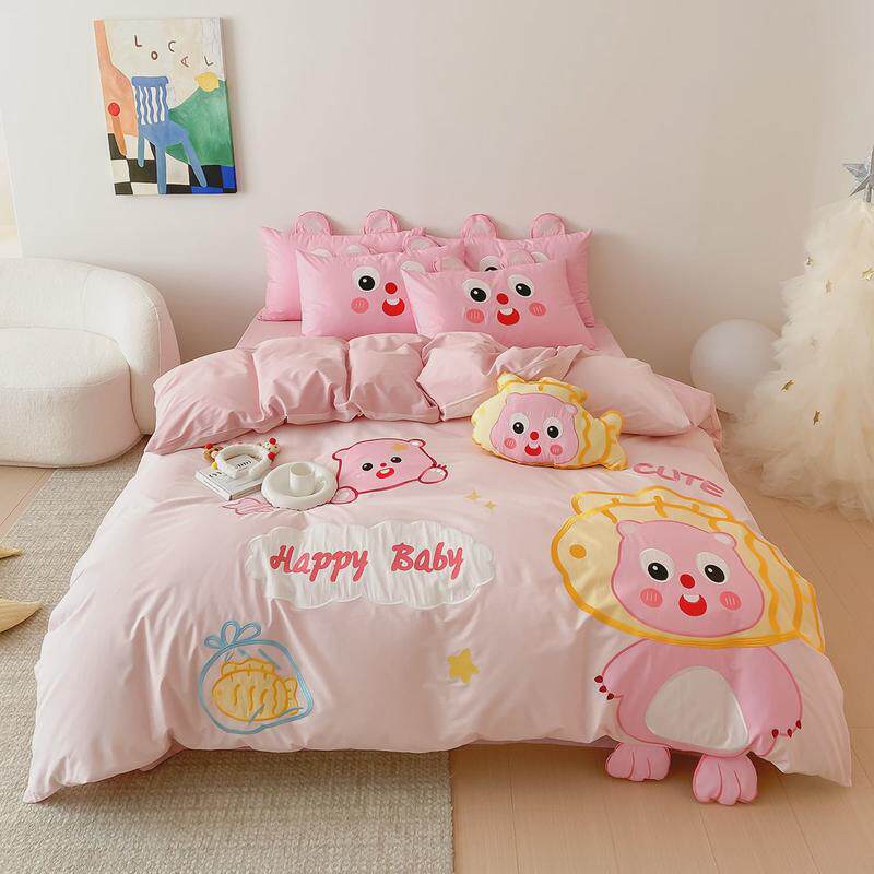 24新款全棉绣花四件套高端可爱水洗棉立体元气亲子床品