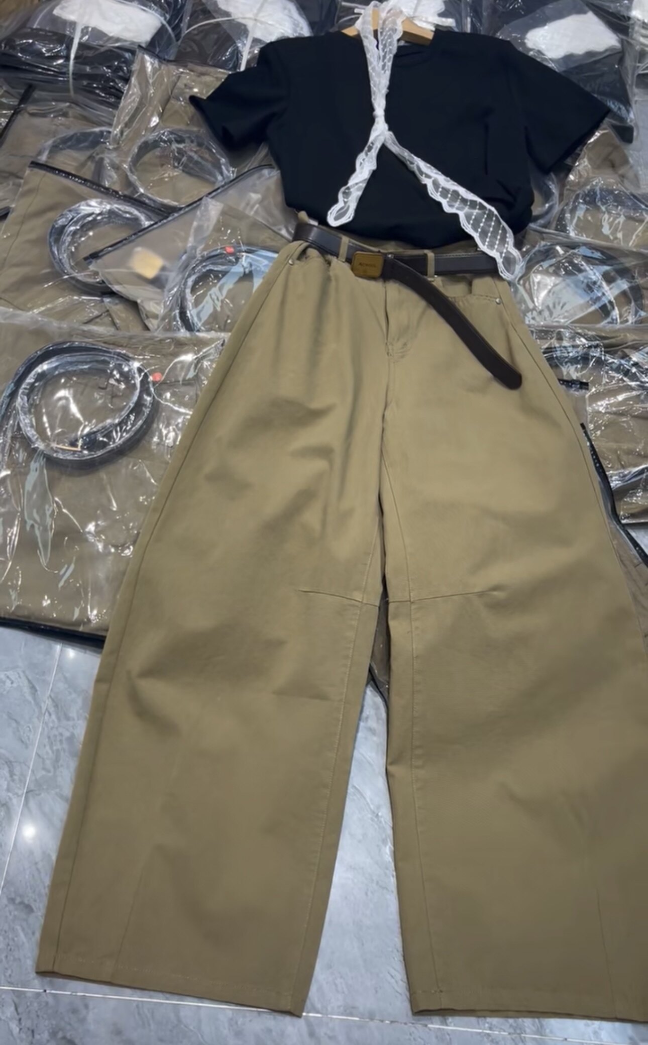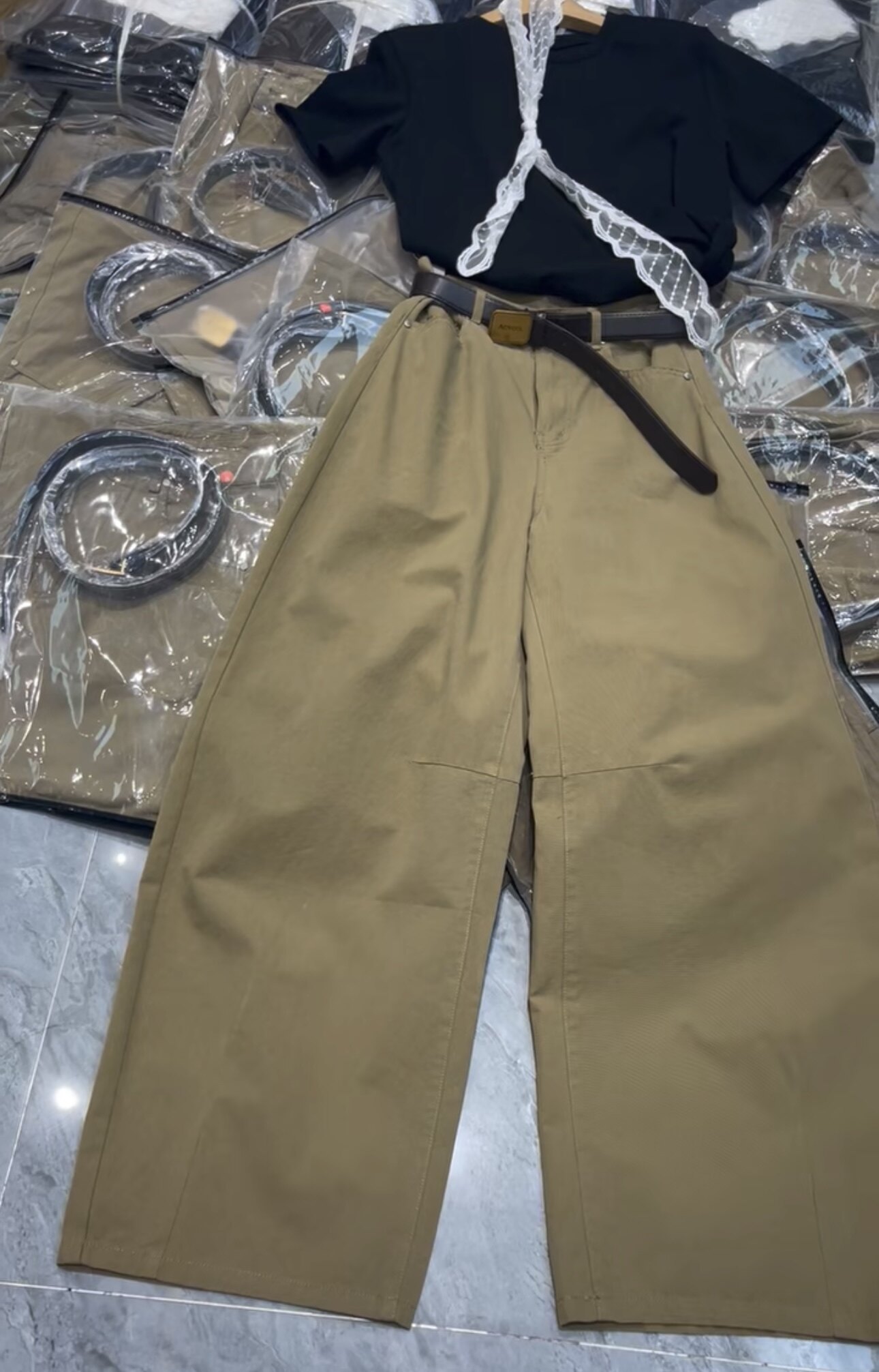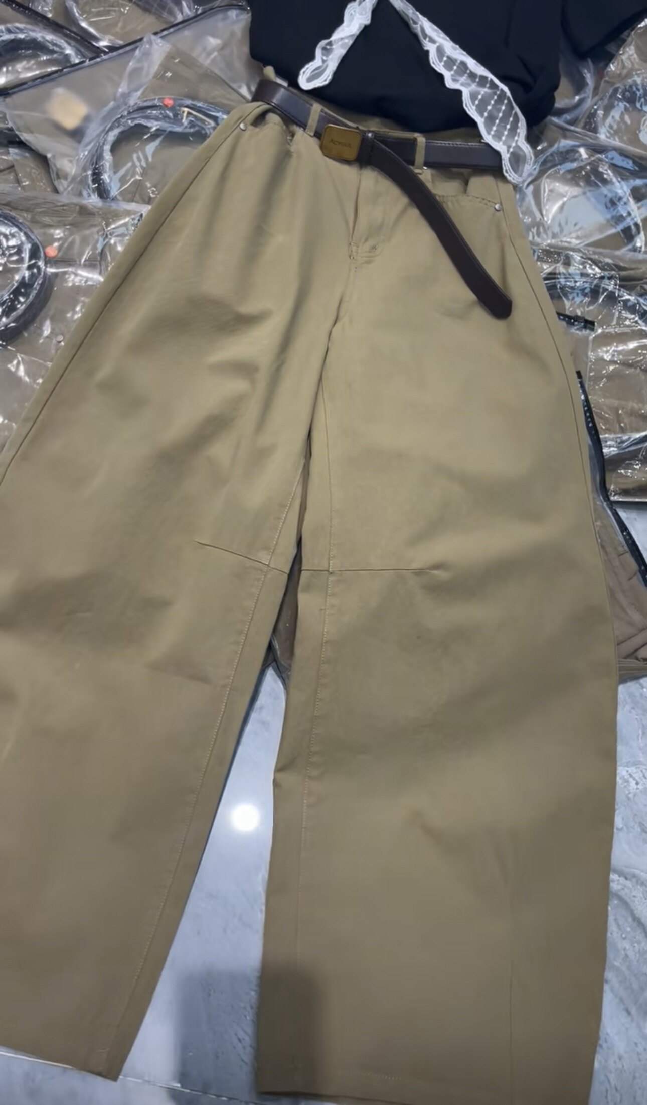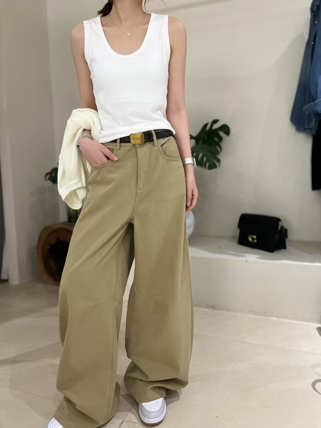 高腰皮帶长裤女春款薄款2025年新款宽松阔腿显工装裤字辣妹修腿