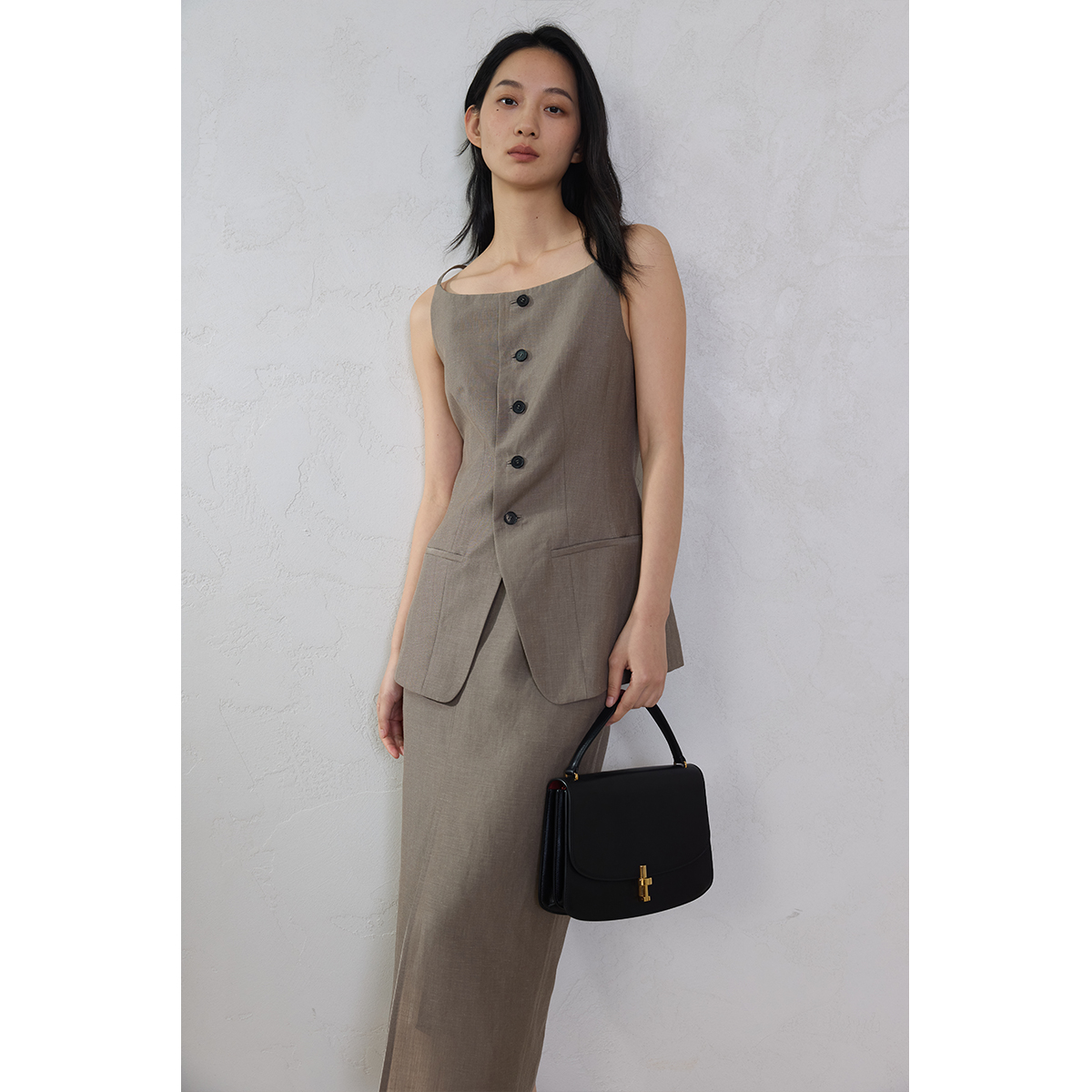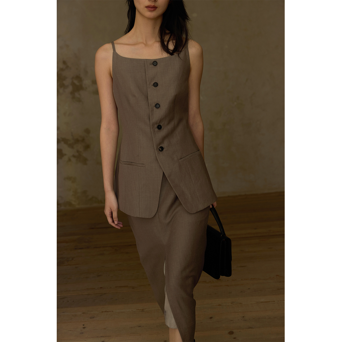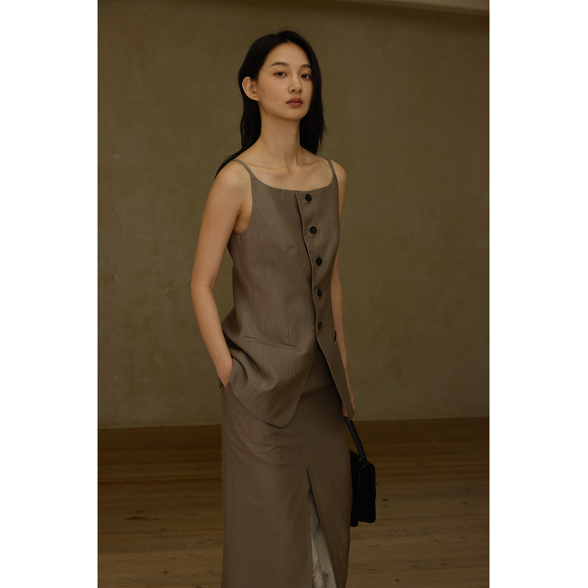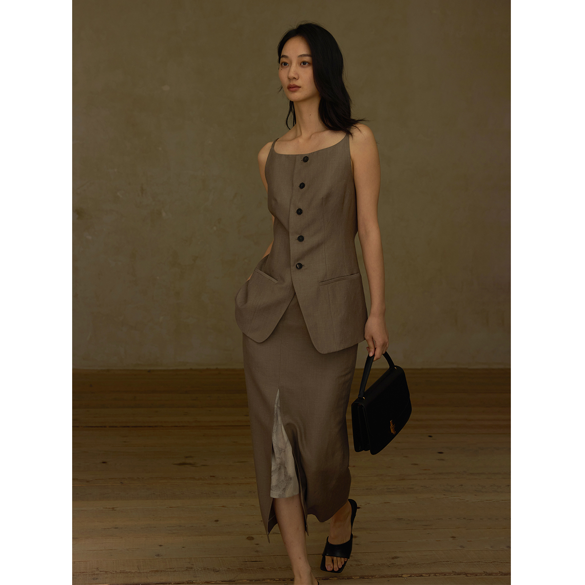 commuse memory 通勤老钱丝麻毛交织设计感马甲背心+印花拼接半裙